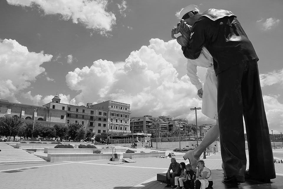 Stendhal s’ennuyait à Civitavecchia, oú il fut consul de France. Il a beaucoup médit de la ville, qui semble l’avoir oublié. Sur le lungomare des vendeurs clandestins, africains ou pakistanais, vendent á la sauvette lunettes de soleil et chapeaux de paille pour d’improbables belles. La pizza capriciosa a le caprice insipide. Seule découverte, la statue géante ‘Unconditional surrender’ de John Sewart Johnson, impressionnante devant la citadelle du port. Gloire au marine US : la ville a été complètement détruite par les bombardements américains en 1943.