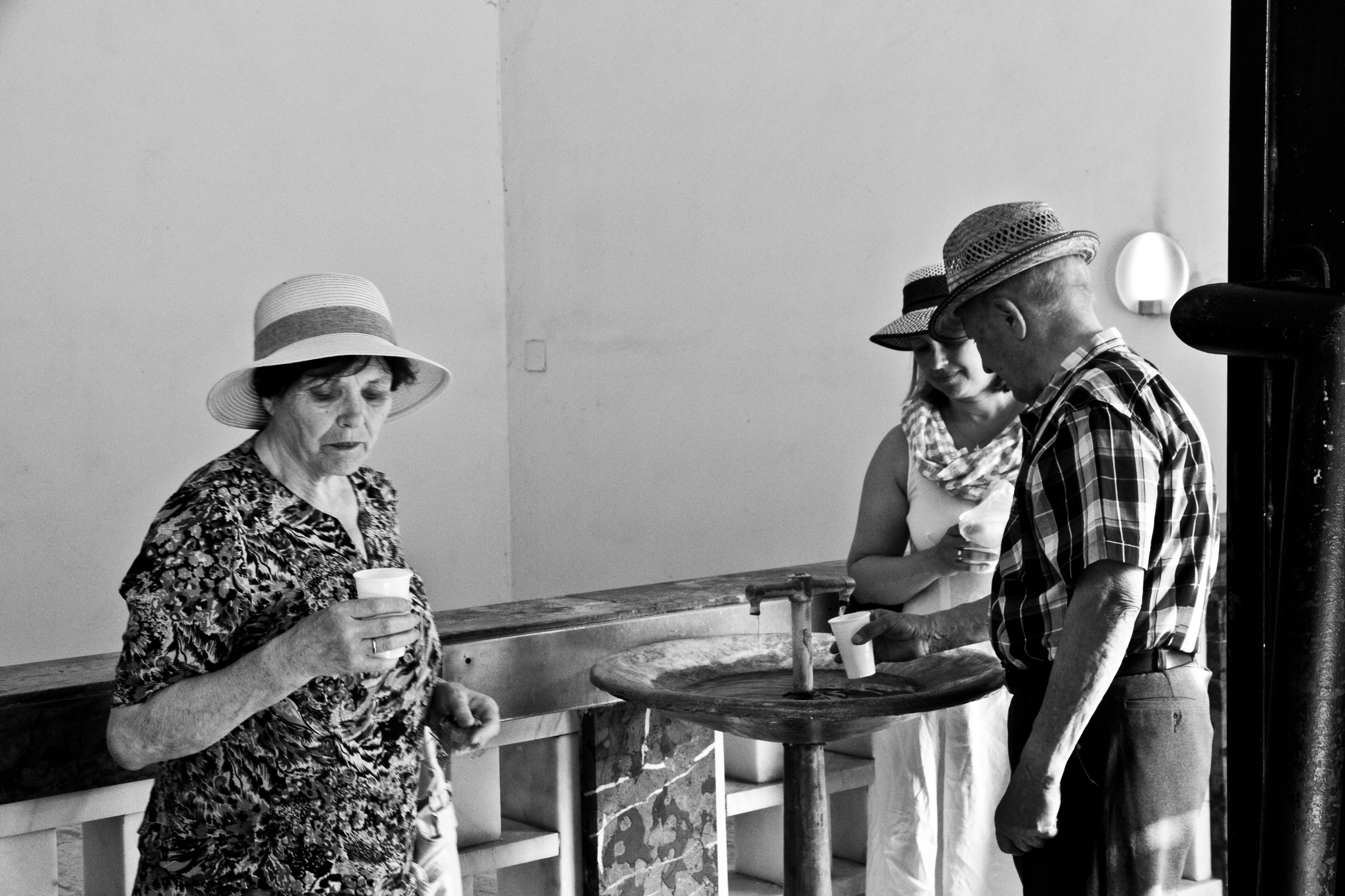Les curistes, enfin, se reconnaissent à leur petite tasse de pseudo-porcelaine, aux formes biscornues, qu’ils vont remplir aux fontaines, sous la colonnade, dans le parc, ou encore à l’extrémité de la galerie de bois, qui me rappelle le vieil hôpital civil de Manchester. Les mieux informés vont discrètement au pouhon qui est dans une petite salle, sur la droite de l’ancienne clinique, le Lazné III, devenue galerie de massages, salle de cinéma et lieu de réunion pour les événements professionnels. L’eau ferrugineuse est très chaude, se boit par petites gorgées, en marchant. Les curistes sont le plus souvent âgés, habillés de tenues ternes, le regard triste. Ils survivront au festival.