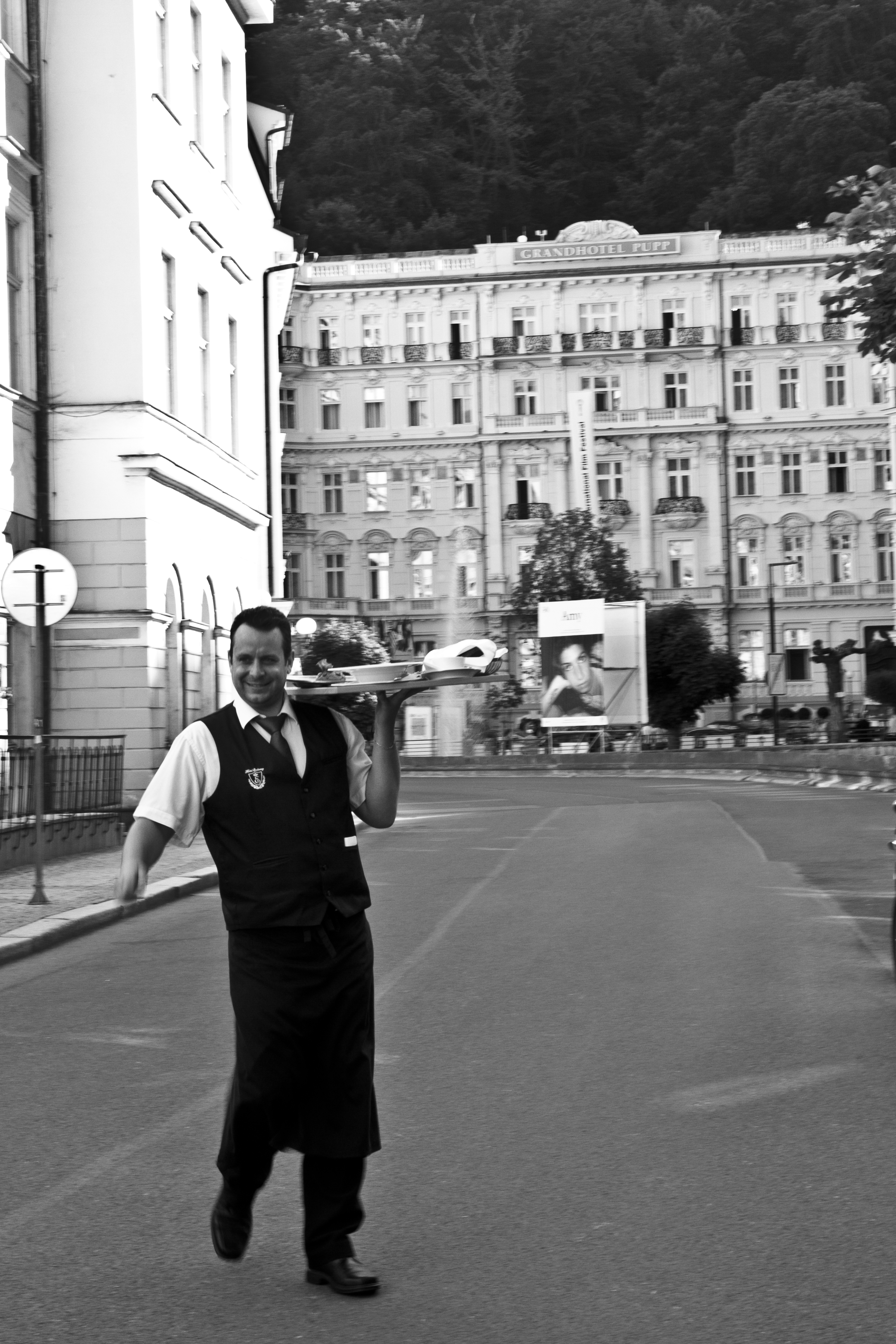 Des Russes, il y en a beaucoup ici. Karlovy Vary, comme la Côte d’Azur, est devenue une des places d’investissements et de repos des « nouveaux riches »de la Nouvelle Grande Russie. Du coup, Karlovy Vary détient certainement les records mondiaux du nombre de bijouteries par habitant et au kilomètre carré. Beaucoup de boutiques de souvenirs aussi, dit shopping centers, fausses porcelaines de Saxe, tableaux d’un naturalisme plat, lustres clinquants, magnums de Champagne, hortensias de papier. Et sur les hauteurs de la ville, massives villas avec, parfois, une vieille Rolls Royce bien en vue.