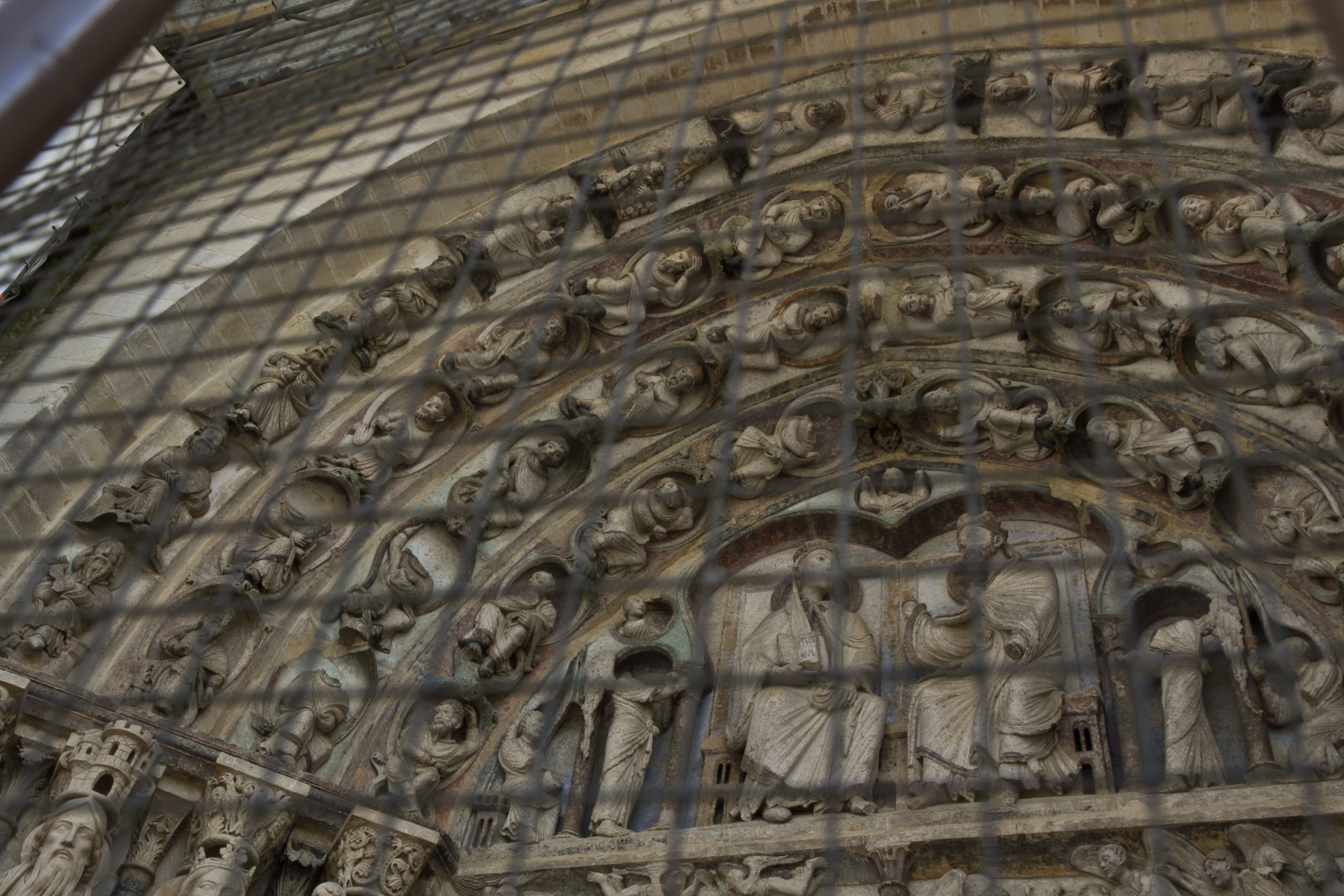 Sous le transept, le sacristain de la la cathédrale Notre-Dame de Senlis peut dormir tranquillement sur sa chaise. Il ne risque pas d’être dérangé. La nef est vide, pas un seul touriste. Personne pour suivre l’histoire de Saint-Louis sur les vitraux narrant l’histoire de Saint-Louis ni pour essayer de regarder le portail de la Vierge, malencontreusement protégé par des grillages. Personne pour s’intéresser encore à un des ouvrages pionniers de l’art gothique en France, antérieur aux cathédrales Notre-Dame de Paris, de Chartres ou de Reims. Ah si, à l’Office du tourisme, il y a deux anglaises qui s’enquièrent du nom de l’immense hêtre pourpre qui rayonne dans le parc du Palais royal (celui d’Hugues Capet, l’ancêtre des ancêtres).
