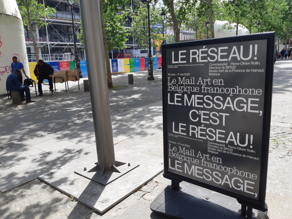 Avant-hier, j’ai finalement réussi à voir l’exposition « Le message, c’est le réseau. Le Mail Art en Belgique francophone ». Cette exposition est une des nombreuses activités culturelles victimes de la pandémie et du confinement. Elle a bien été prolongée de quelques jours et fermera sera ses portes demain 14 juin, sans tambour ni trompette. C’est dommage. Je pense à la déception de tous les participants impliqués, et en particulier à un de mes amis, Charles François, qui m’a fait découvrir le Mail Art et qui était un des six exposants. Il avait, dans des conditions difficiles, passé beaucoup de temps à contribuer à la préparation de cette exposition, conçue par Pierre-Olivier Rollin pour le BPS22, Musée de la Province de Hainaut, basé à Charleroi. Paradoxalement, pour aller visiter une exposition consacrée à un art essentiellement domestique, à la distribution quasi dématérialisée par son caractère postal, il m’a fallut prendre le métro, ce que j’évite de faire depuis un mois. Le réseau n’est pas encore rétabli et la station Rambuteau qui dessert le Centre Georges Pompidou (dont chacun sait qu’il est situé en face du Centre Wallonie-Bruxelles) est toujours fermée.