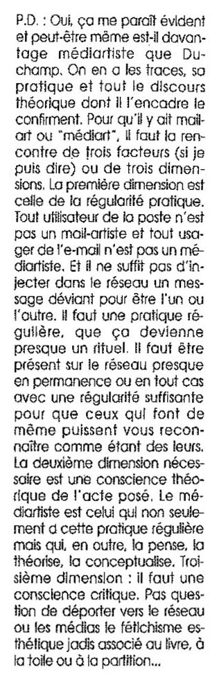 N’étant nullement spécialiste de la question, je ne voudrais pas me lancer dans de complexes discussions théoriques sur la notion de Mail art et de son histoire. J’attends pour cela le livre que prépare mon ami Charles. A propos des origines historiques du Mail Art le communiqué de presse écrit ceci : « Si les artistes modernes du début du 20e siècle ont régulièrement édité et utilisé des cartes postales illustrées, la paternité de ce que nous appelons le Mail Art est traditionnellement attribuée à l’artiste américain Ray Johnson (1927-1955) avec la création de la New York Correspondance School, en 1962. Le mouvement s’est ensuite répandu dans le monde entier, trouvant de nombreux correspondants sur tous les continents, qu’ils soient artistes professionnels ou non. Ces milliers de correspondants ont ainsi contribué à des extensions et des spécifications de la pratique initiale. » Cela me paraît assez réducteur. L’article « Art postal » de Wikipedia.fr est très mal fichu, mais il cite au moins les noms de Victor Hugo et de Stéphane Mallarmé. Je pense qu’il faudrait aussi probablement inclure Paul Verlaine, dans sa période zutiste, si je me souviens bien. En tout cas, en 1997, un autre de mes amis liégeois, Pascal Durand, a donné au même Charles François, pour la revue Cyber-Flux-News, un entretien très éclairant où il montre que Mallarmé était à la fois un praticien et théoricien de l’art postal, et qu’ à ce titre on peut le considérer comme un précurseur de ce que Pascal, expert en mots-valises désigne comme médiart.