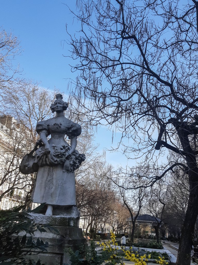 Mercredi. Beau soleil, air doux. Paris a retrouvé sa jeunesse et j’essaie de retrouver la mienne. Deux à trois heures de marche par jour. Pierre Henri Béranger lui, reste assis, pensif dans la lumière, au Square du Temple, rebaptisé Square Elie Wiesel. Il doit se demander qui, de lui ou de François, est le moins oublié. Qui a jamais entendu une chanson du célèbre satiriste ? Quand je tape son nom dans Qobuz, j’obtiens « Michel Onfray, artiste ». Je m’en vais jusqu’à la librairie de la rue de Quincampoix, où je me sens toujours un peu chez moi, puis jusqu’aux bouquinistes du quai de Gesvres. Marcher est une activité plus saine que lire. Peu de voitures, beaucoup de piétons, malgré les magasins fermés. Les masques soulignent la beauté du regard des femmes. Nombre d’entre elles préfèrent à présent montrer leur sourire. C’est agaçant et réconfortant à la fois. Peu de couples. Des groupes de filles papotent, assises en tapisserie sur les trottoirs du Carreau du Temple ou de la Place de la République. Elles regardent les jeunes gars qui tapent le ballon ou qui skatent sans attention pour elles, ni d’ailleurs pour les passants. Il est temps que Cupidon se déconfine.