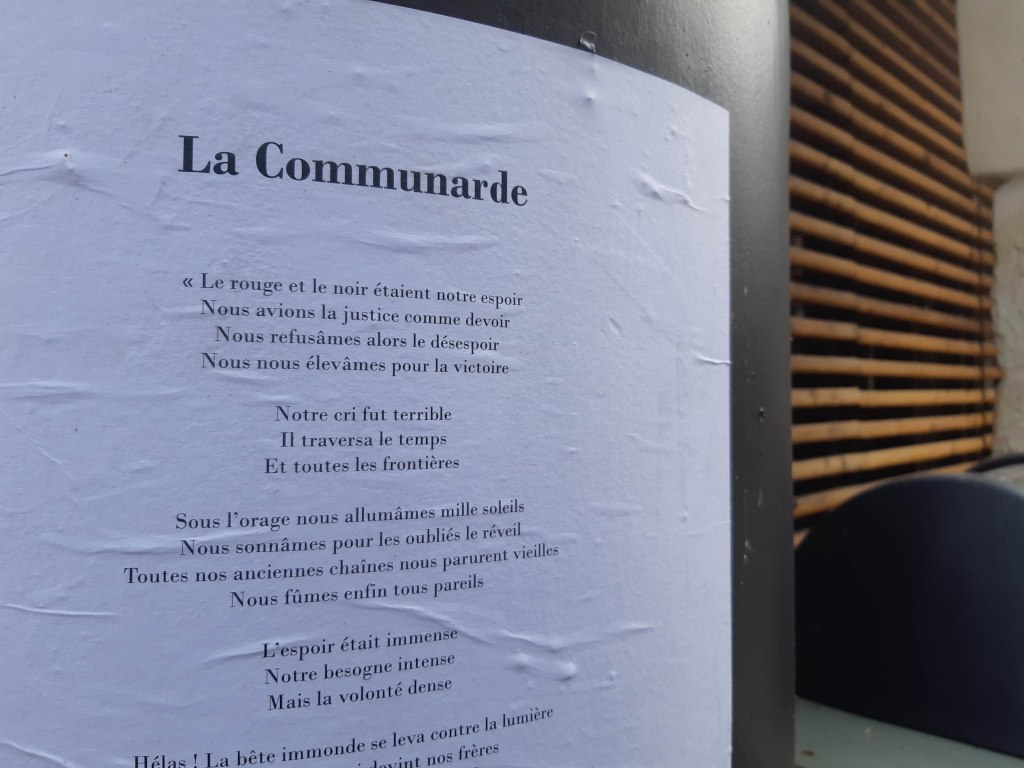 Veille du troisième confinement parisien. Soleil, air froid. Beaucoup de monde en rue. Est-ce parce que le Premier Ministre, casse-tête, a dit hier qu’il vallait mieux être confiné à l’extérieur qu’à l’intérieur ? Les libraires sont contents : le livre est enfin devenu essentiel. Pour fêter cela, chacun, dans le XIème et alentours, consacre une vitrine aux nombreuses parutions qui célèbrent le 150èma anniversaire de la Commune. Les cafés et les restaurants sont toujours fermés. La plupart se sont organisés pour vendre à l’étalage des plats à emporter ou du vin chaud. Mon voisin fleuriste ne sait pas si oui ou non il pourra ouvrir lundi.