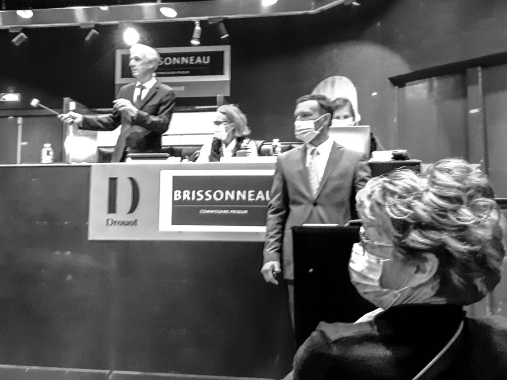 Le caractère lugubre vient en grande partie des enchères transmises par téléphone et via le live Internet que relaient cinq jeunes employés. Ces enchères emportent 95 % des lots. Dans la salle, une vingtaine de vrais amateurs, quelques uns membres de l’association des amis de l’artiste. Ils assistent impuissants à des joutes argentées qu’ils n’ont pas les moyens de contrer. Ils prennent des notes pour évaluer la valeur de leur propre collection. L’assistant du maître-priseur cherche, le plus souvent en vain, à stimuler les passions endormies de l’audience. Il a le ton du commentateur radio d’un match de football. Lugubre, en effet.