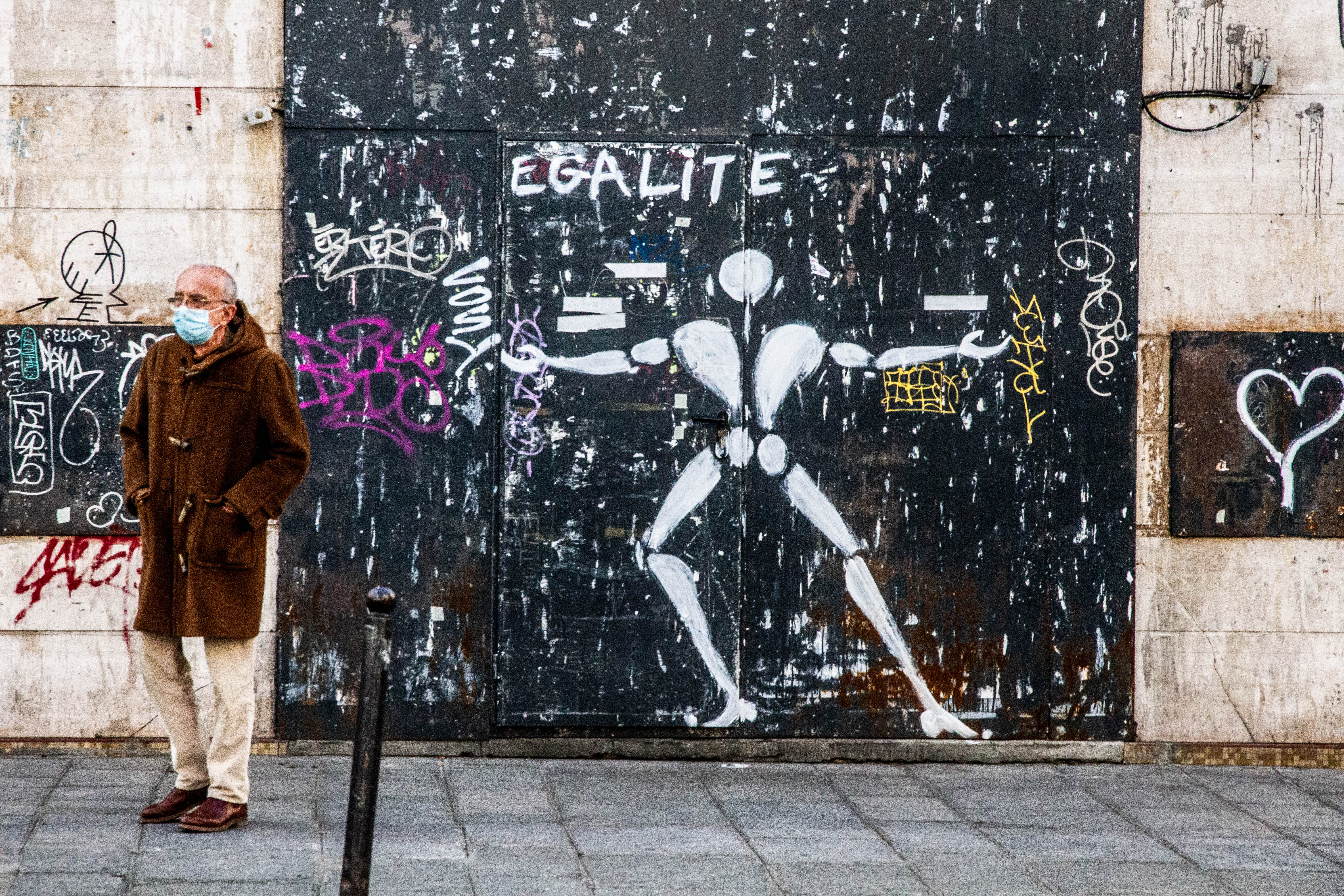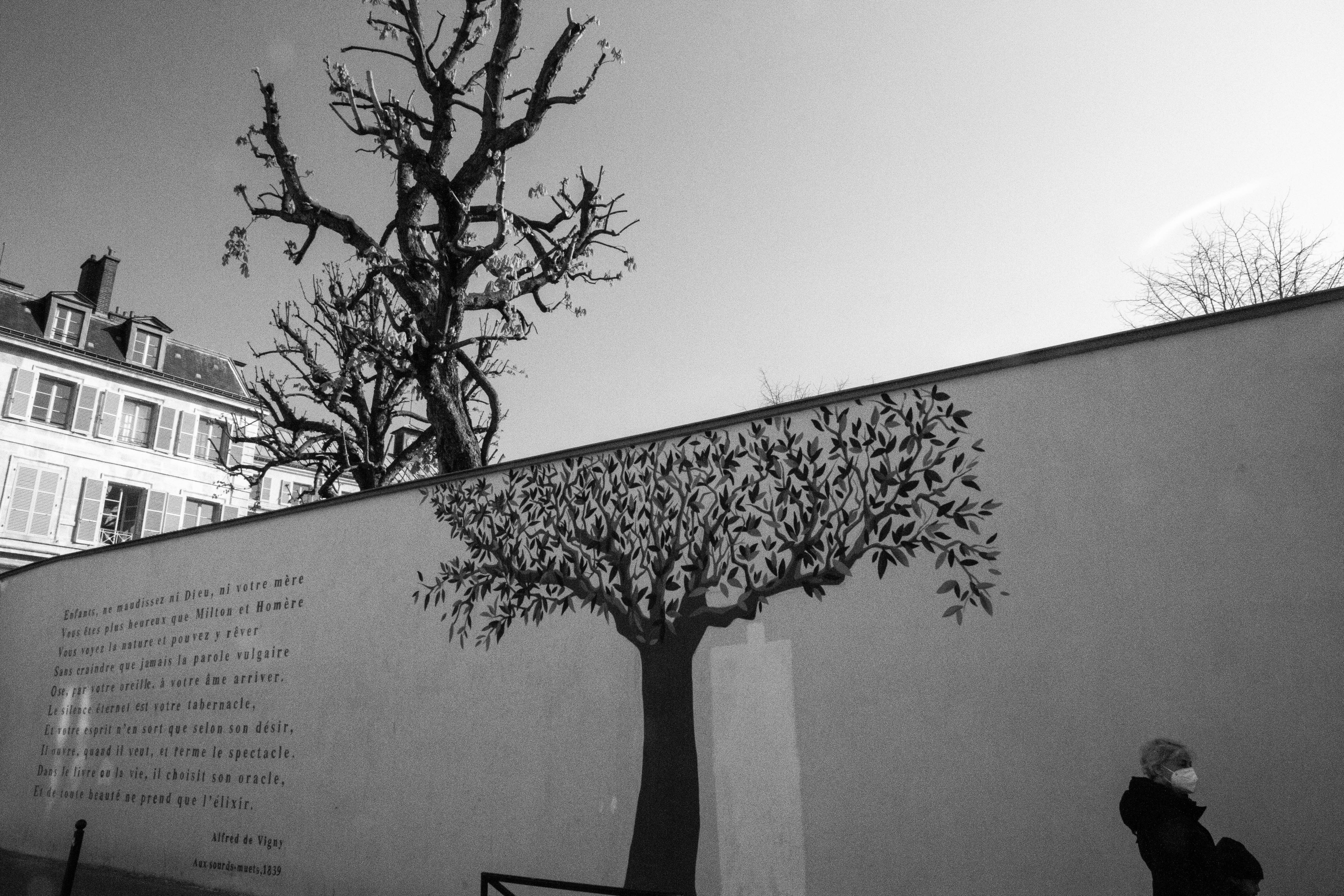 Rue Vavin, je photographie le Balzac de Rodin, entre deux feux rouges, de dos. (Au Musée de Brooklyn, c’est plus surprenant de le photographier de face). Derrière moi, un mendiant râle « Oui, vous allez avoir une jolie photo, mais pour moi, il n’y a rien ». De fait, depuis un an, avec l’essor des cartes de crédit à contact, les riches n’utilisent plus de monnaie, même pour payer leur pain. Le ruissellement de la richesse théorisé par le Président est encore plus tari qu’auparavant. Le Boulevard Montparnasse est quasi désert. Tous les restaurants et les cafés sont fermés, y compris la Closerie des Lilas, et, ici, pas de « happy hours ». Mais que font Sollers et BHL ? Heureusement, le Maréchal Ney est toujours là. Je l’avais déjà photographié lorsque j’étais venu à Paris en 1969, année du Bicentenaire, avec mon ami Jean-Pierre Hautier. Nouvelle photo, in memoriam. Autour du Panthéon et de la Sorbonne, rues vides. Précarité, est-il écrit sur un mur.