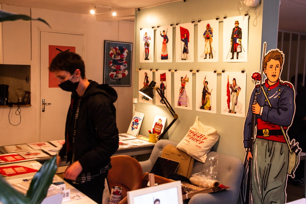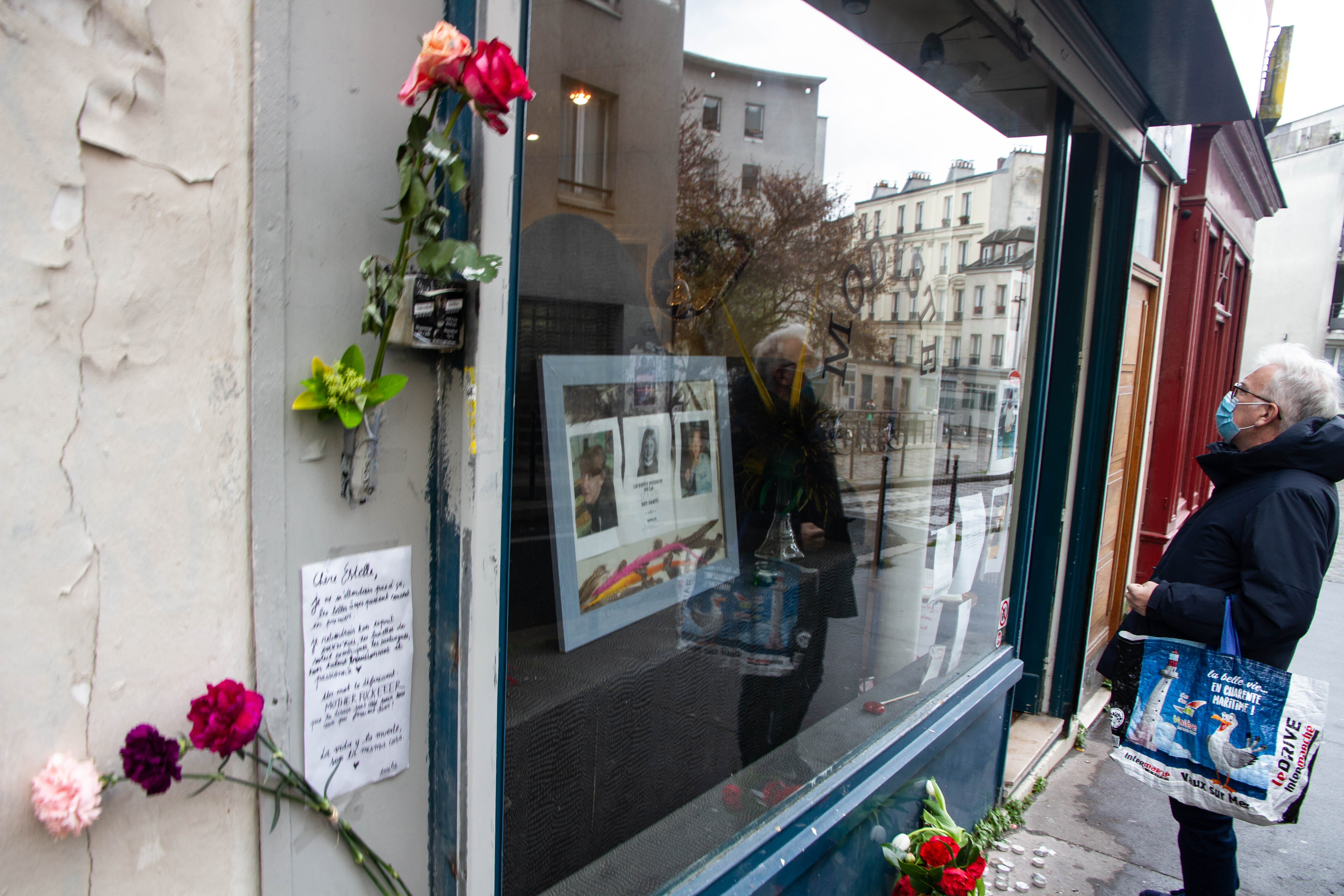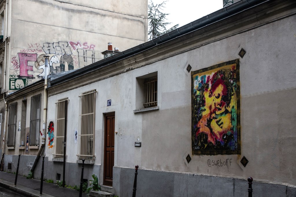 Je remonte la rue de la Mare. Dans un atelier militant se vendent des affiches Louise Michel et autres imprimés de commémoration. Un peu plus haut, des roses et des oeillets ont été accrochés sur le mur d’une boutique de modiste. Je comprends qu’Estelle s’en est allée et qu’elle était populaire ici.