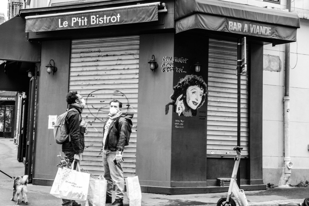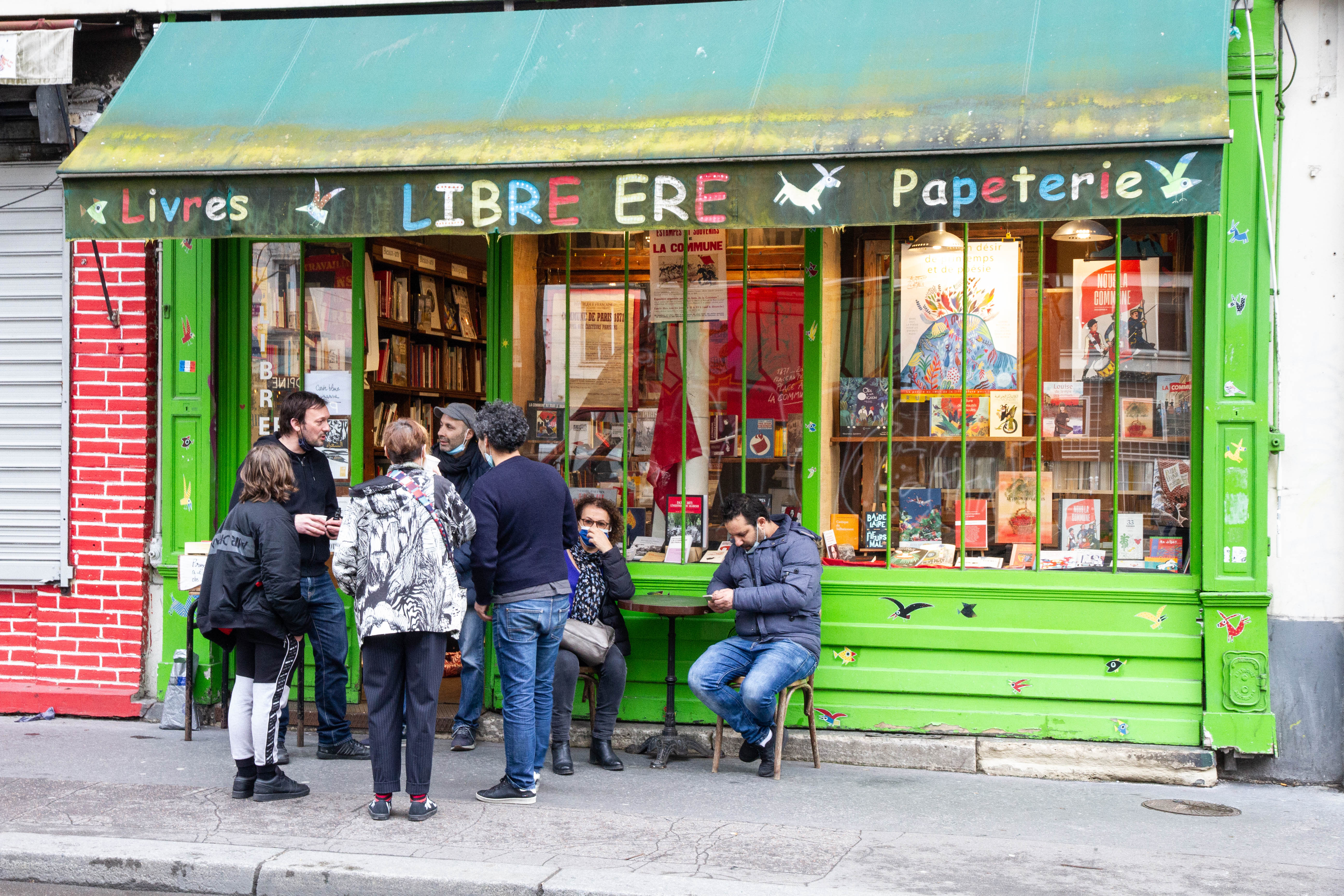 Une dernière photo sur le Boulevard de Ménilmontant : un petit groupe festoie face à la devanture vert pomme de la librairie Libre Ere. Le libraire, un jeune Arabe souriant, m’interpelle : « C’est pour ma promotion ou vous êtes de la police ? » « De la police ? Moi ? Mais non, je suis un de vos clients. Je vous ai acheté l’édition facsimile de Nadja ! ». Murmure d’assentiment amusé dans l’assemblée. Le libraire : « Je plaisantais. Nous fêtons les dix ans de la librairie. ». Sous les masques, nous sommes tous de la police, mais, quand nous serons à l’air libre, je deviendrais bien l’ami de ce gars-là.
