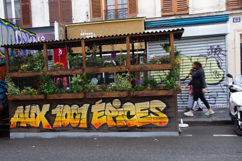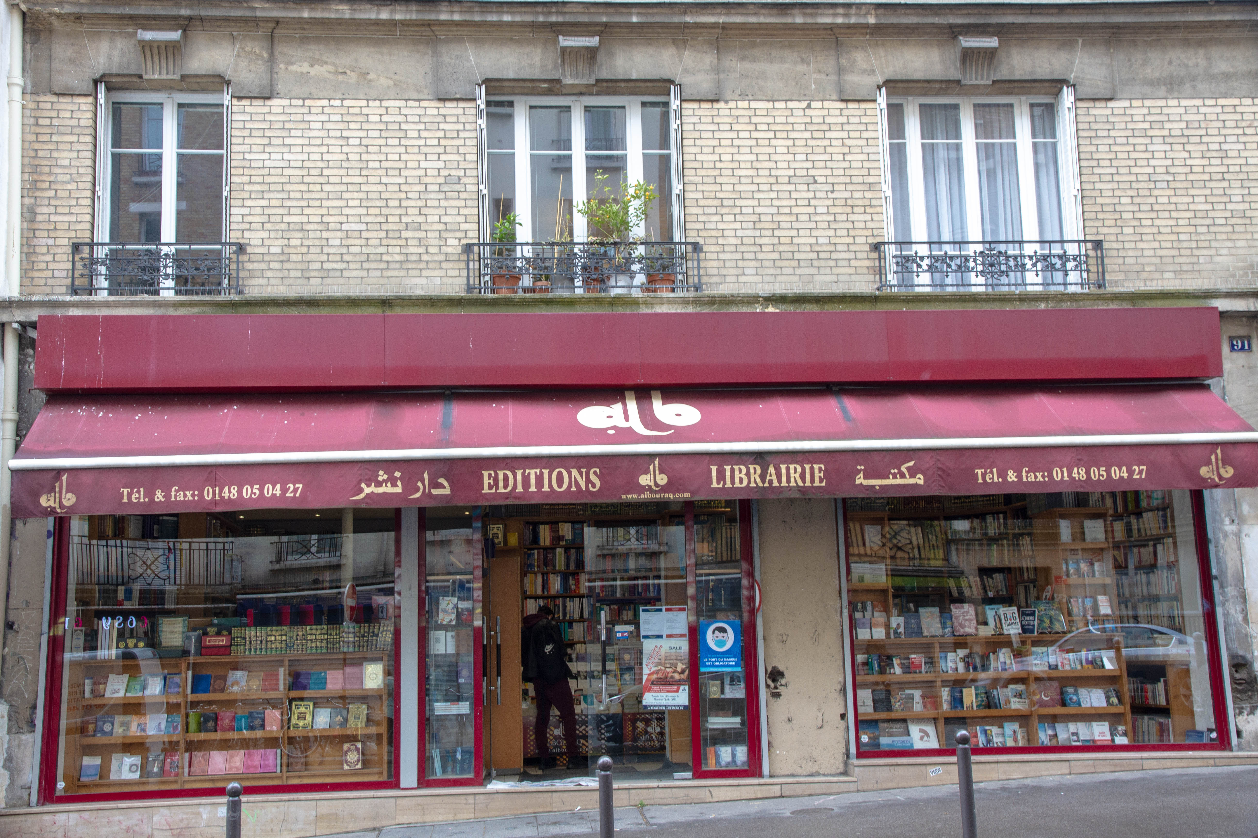 Comme dans la rue Oberkampf et la rue Saint-Maur, on trouve ici pas mal de cafés cool et de petits restaurants. Tout est fermé évidemment, les volets métalliques sont abaissés affichant tristement sur leurs tags sans génie. Mais la Rue Jean-Pierre Timbaud est aussi connue pour sa mosquée Omar, qui fut un des points de rencontre des radicaux et de départ vers la Syrie. Il y a quelques années, on pouvait encore y voir des prières de rue. Plusieurs librairies coraniques et des magasins de vêtements traditionnels contrastent avec le côté débridé des oeuvres de street art. La devanture la plus soignée est celle d’une agence de voyage d’Arabie saoudite. Entre Les Pieds Nickelés et le Coran, il faut choisir !