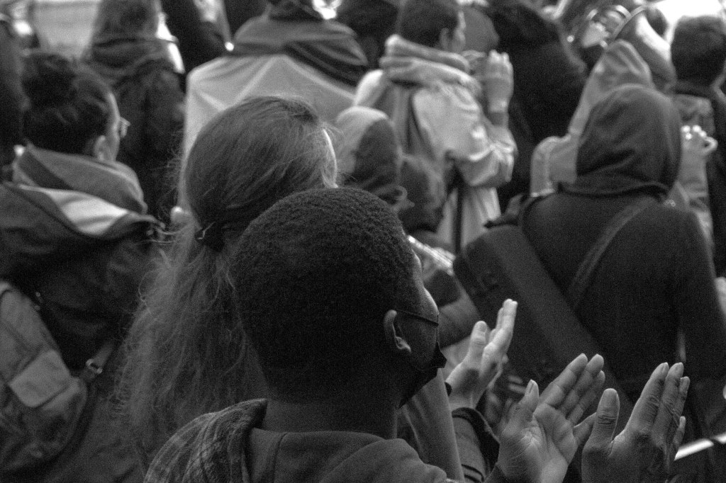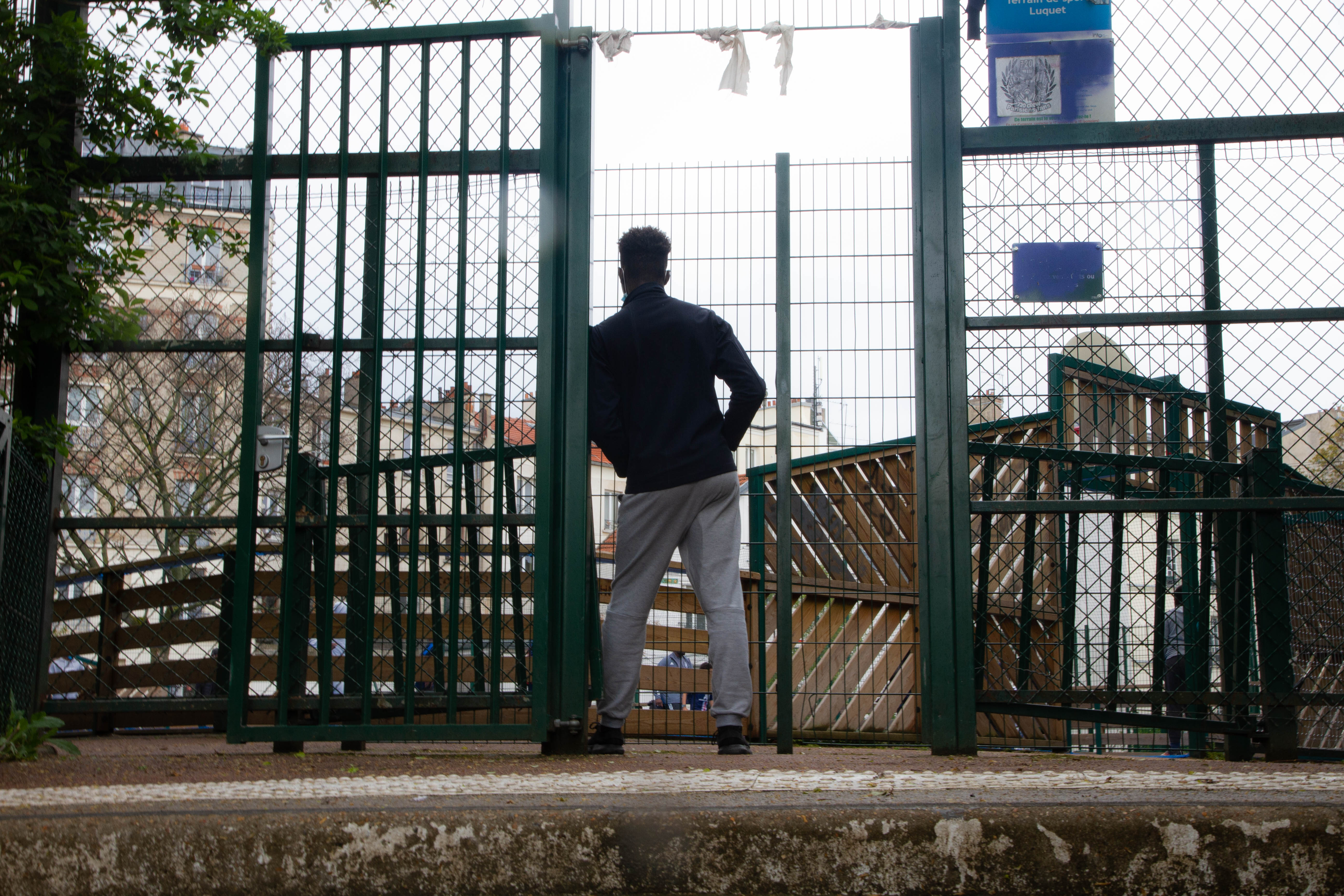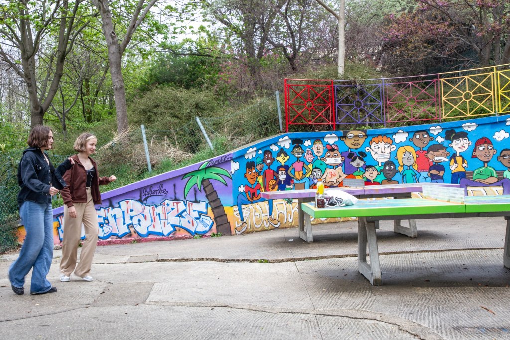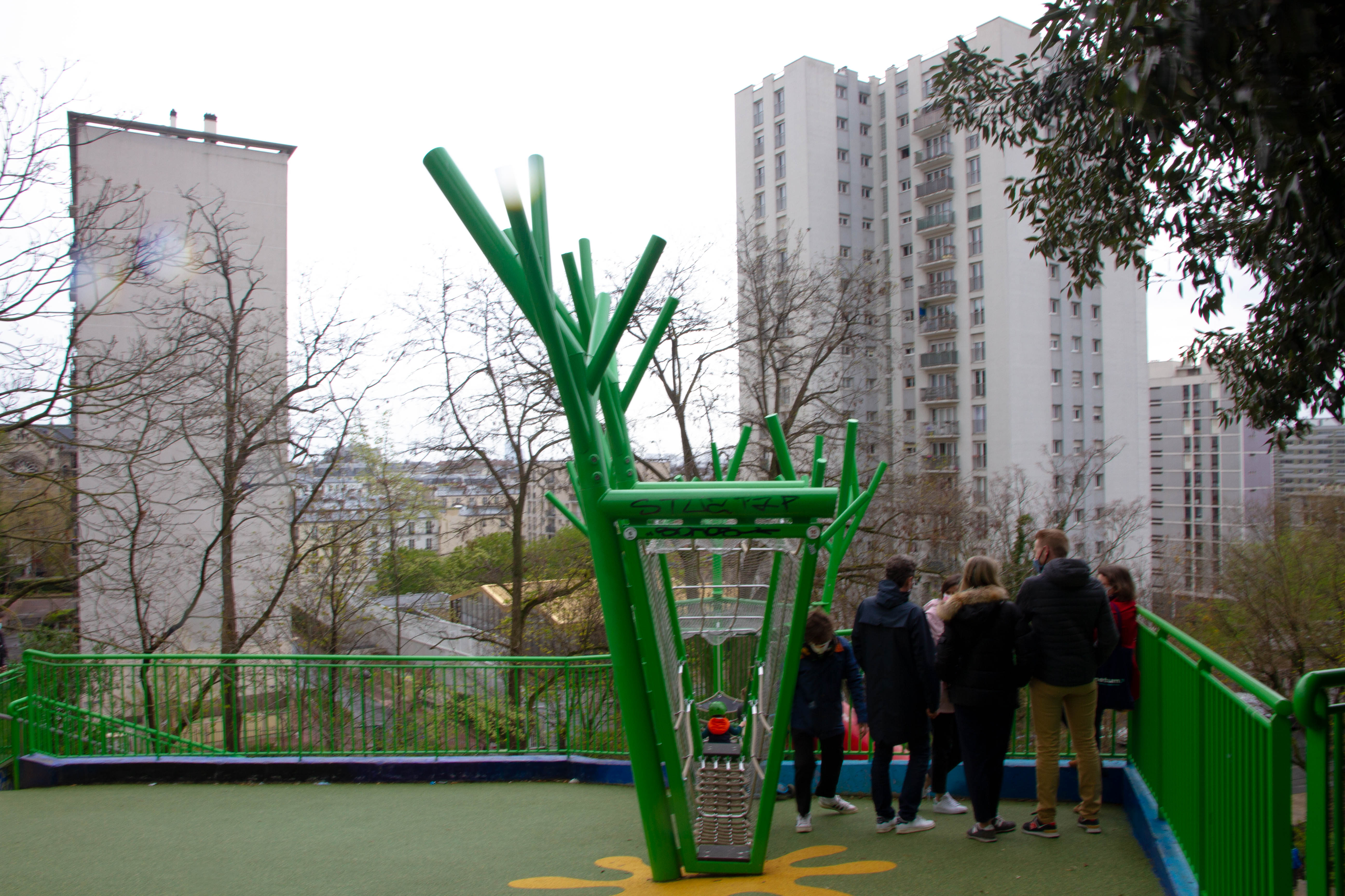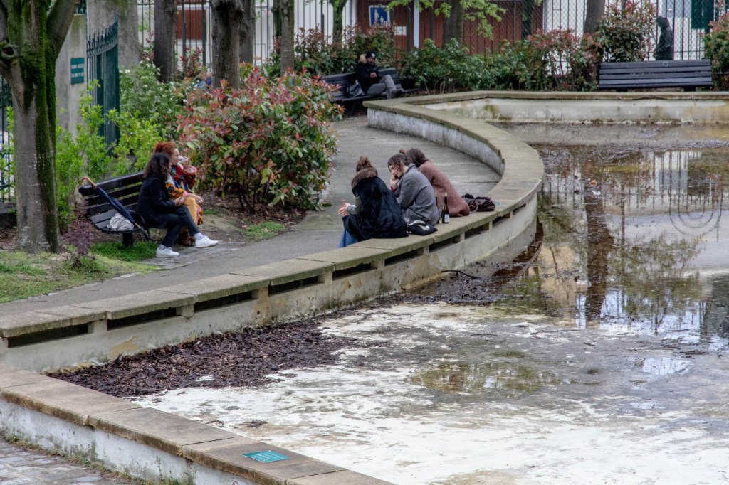 La dernière fois que j’étais venu au Parc de Belleville, en juin 2015, se tenait dans un petit amphithéâtre ouvert un festival Irrueption de rap et de free style. Les organisateurs avaient été tellement contents de mon reportage photo qu’ils m’avaient demandé si ils pouvaient les utiliser pour leur journal. « Vous savez, c’est important pour convaincre la Mairie ! ». J’avais bien sûr accepté, mais je n’ai jamais reçu le journal. Le parc est moins animé aujourd’hui. Quelques filles discutent près des eaux croupies du bassin. Un groupe d’Africains discute de la multiplicité des langues. Des amoureux s’embrassent. Une famille admire la beauté du paysage urbain. Deux gamines se filment en train d’essayer un pas de danse.