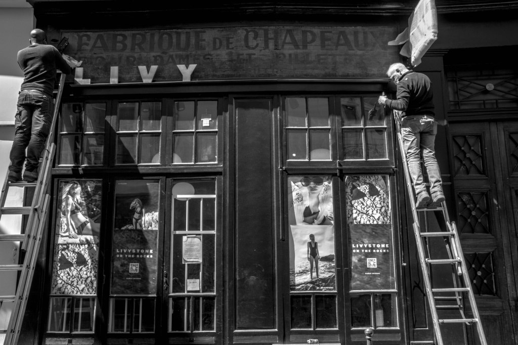 Nous revenons par la Rue Vivienne. Chaque fois que j’y passe, je pense à Robert Franckart, le prof de lettres qui me fit découvrir la littérature française contemporaine. A je ne sais plus quelle occasion, la lecture d’un texte de Collette ou de Proust, plus probablement, il avait souligné le parfum de connotations poétiques du syntagme « Rue Vivienne ». « Ces connotations, vous ne les trouverez pas dans « Rue de Renory ». Rue de Renory, c’était ma rue, aujourd’hui dans une déshérence encore bien plus marquée que l’Hôtel du Quai Voltaire. Il y avait des commerces, le cinéma Rex dont j’ai vu l’incendie, une école d’esthéticiennes Maria Goretti, de tristes maisons ouvrières en brique, la butte du chemin de fer et, tout au bout, un port fluvial dont l’accès nous était interdit. Rue Vivienne, rue Vivienne. Rue Vivienne, la restauration de la Bibliothèque nationale est encore en travaux. Un gilet jaune est suspendu aux échafaudages, comme une menace fantomatique de nouvelles protestations à venir.