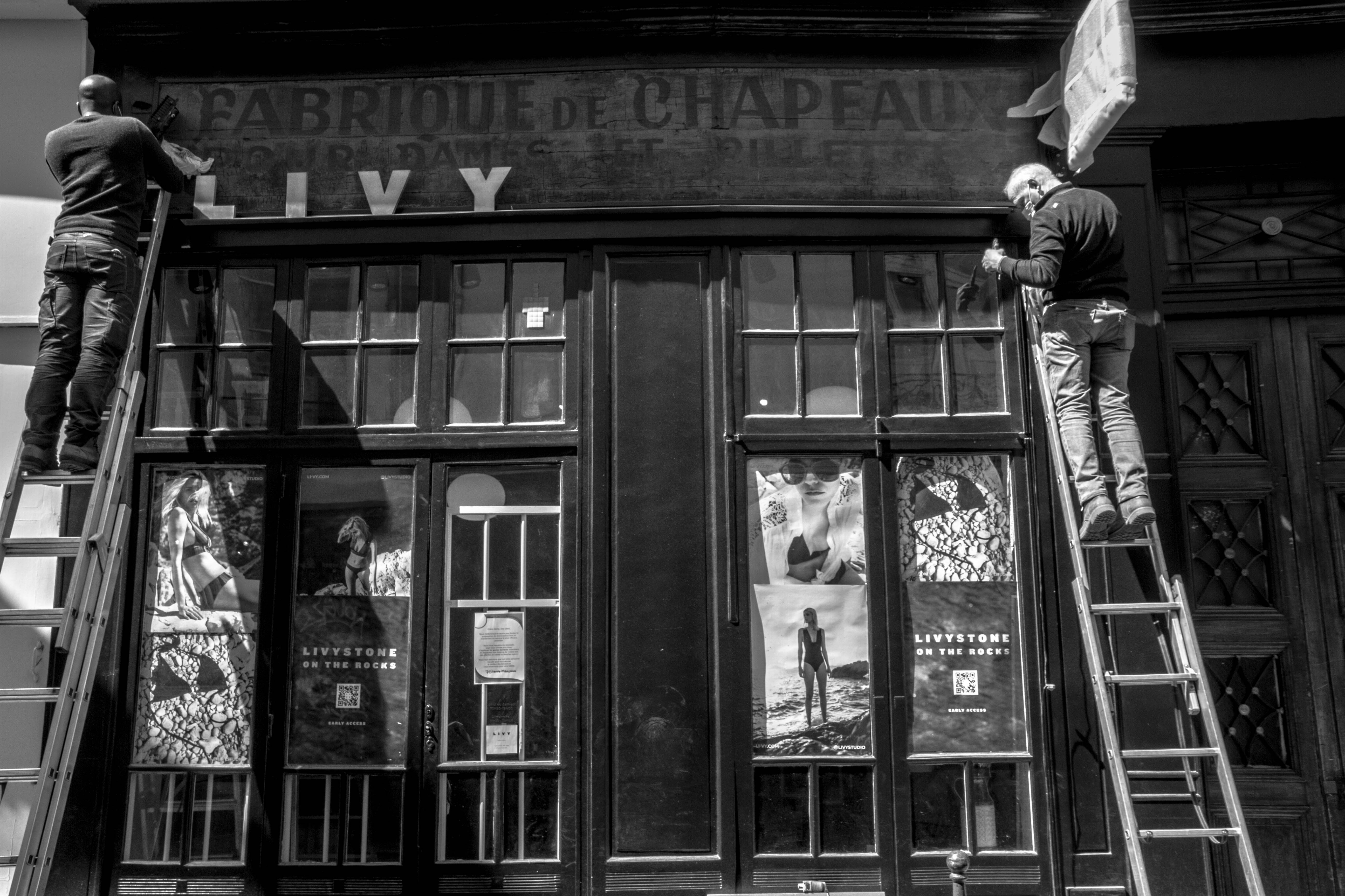 Nous revenons par la Rue Vivienne. Chaque fois que j’y passe, je pense à Robert Franckart, le prof de lettres qui me fit découvrir la littérature française contemporaine. A je ne sais plus quelle occasion, la lecture d’un texte de Collette ou de Proust, plus probablement, il avait souligné le parfum de connotations poétiques du syntagme « Rue Vivienne ». « Ces connotations, vous ne les trouverez pas dans « Rue de Renory ». Rue de Renory, c’était ma rue, aujourd’hui dans une déshérence encore bien plus marquée que l’Hôtel du Quai Voltaire. Il y avait des commerces, le cinéma Rex dont j’ai vu l’incendie, une école d’esthéticiennes Maria Goretti, de tristes maisons ouvrières en brique, la butte du chemin de fer et, tout au bout, un port fluvial dont l’accès nous était interdit. Rue Vivienne, rue Vivienne. Rue Vivienne, la restauration de la Bibliothèque nationale est encore en travaux. Un gilet jaune est suspendu aux échafaudages, comme une menace fantomatique de nouvelles protestations à venir.