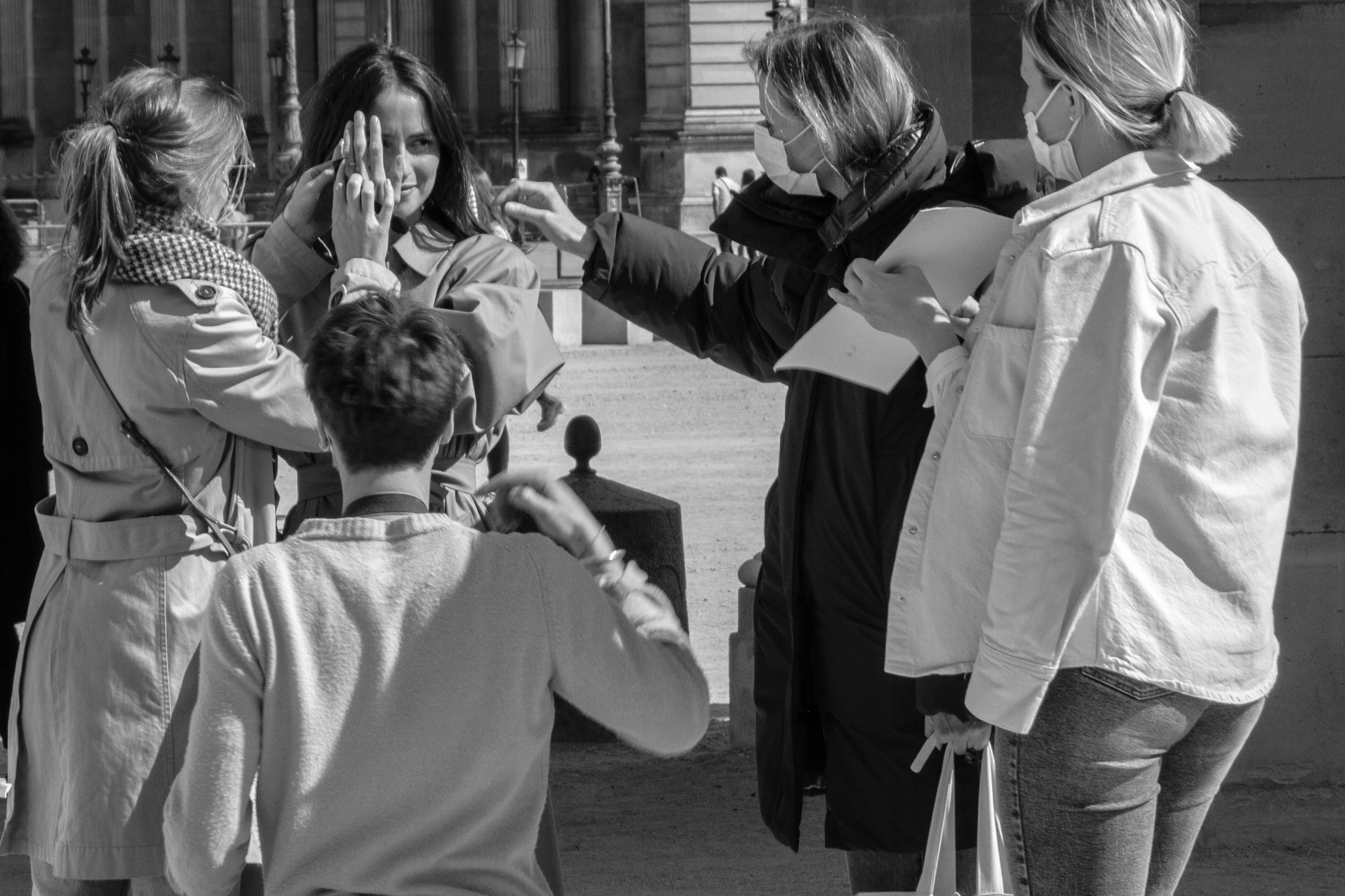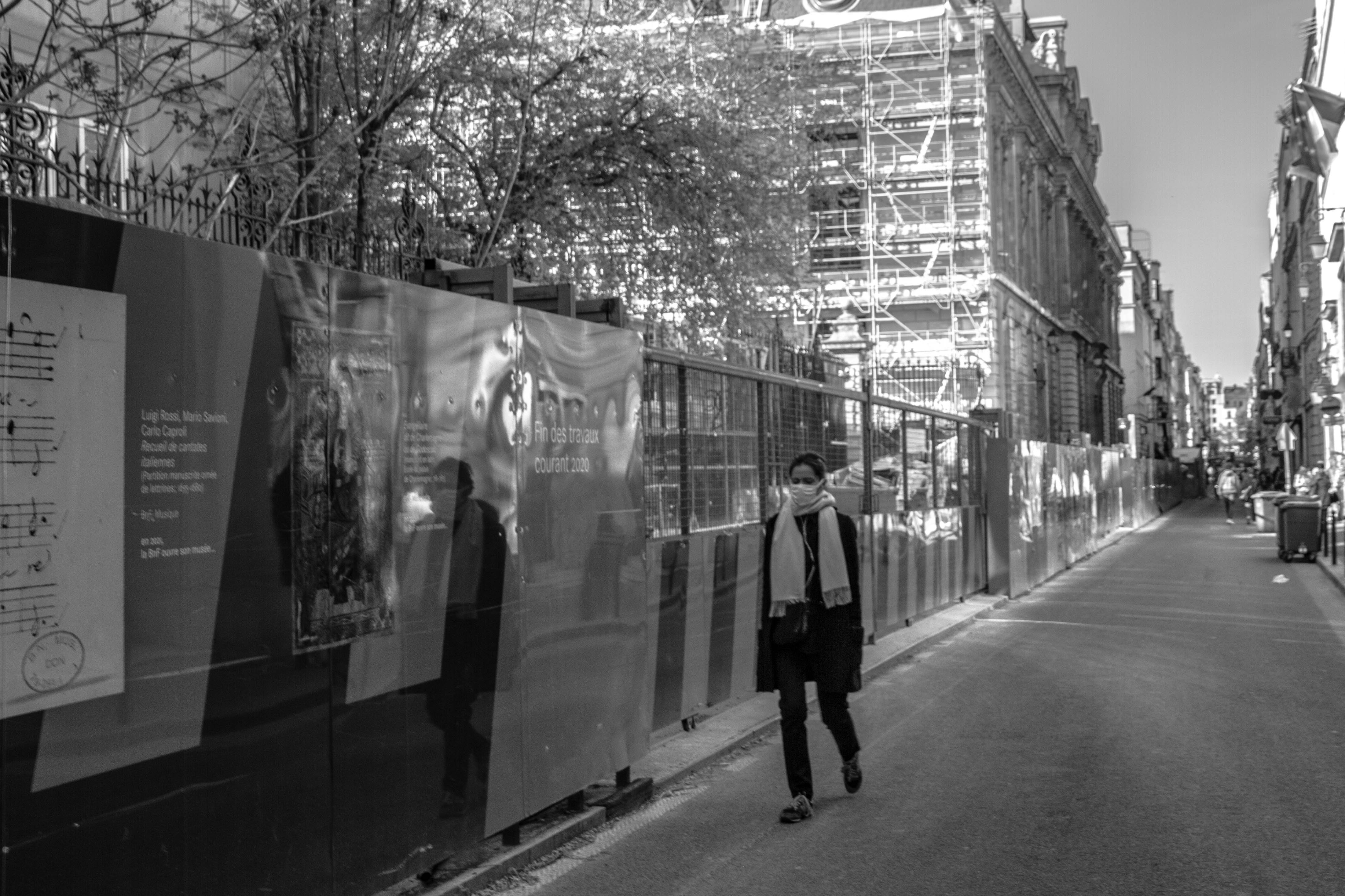 Place Colette, le Café de Nemours, où nous avons l’habitude de manger une glace après la lecture dans le parc du Palais-Royal, est évidemment lui aussi fermé. Passe une élégante.