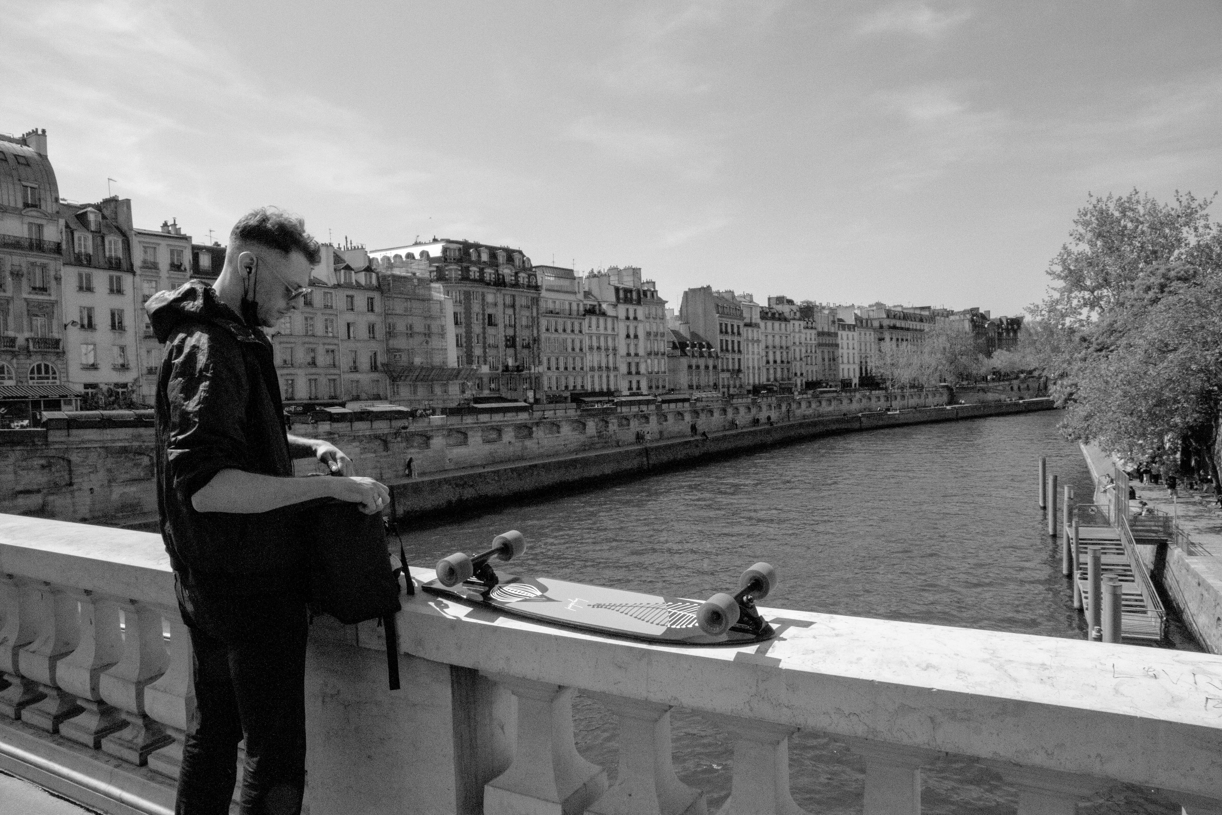 Quelques photographies au vol, réunies dans l’album De quoi se compose Paris. Comme d’habitude, je constate qu’il y a à présent sur les quais plus d’adeptes du vélo, du jogging et du skateboard que du Flâneur des deux rives. Photographier les quais de Paris n’est pas très facile. Une amie m’écrivait gentiment l’autre jour à propos de mes promenades « Formidable tentative d’ épuisement de lieux parisiens … quelle plume ! ». C’est gentil, mais certains lieux sont déjà, depuis longtemps, épuisés, épuisés par les citations, épuisés par les photographies, épuisés par les albums de photographie que l’in trouve d’occasion célophanée chez les bouquinistes. La chronique de la pandémie me permet de les retrouver, d’essayer de mettre à jour le regard, de nous rajeunir un peu. Mais après ?