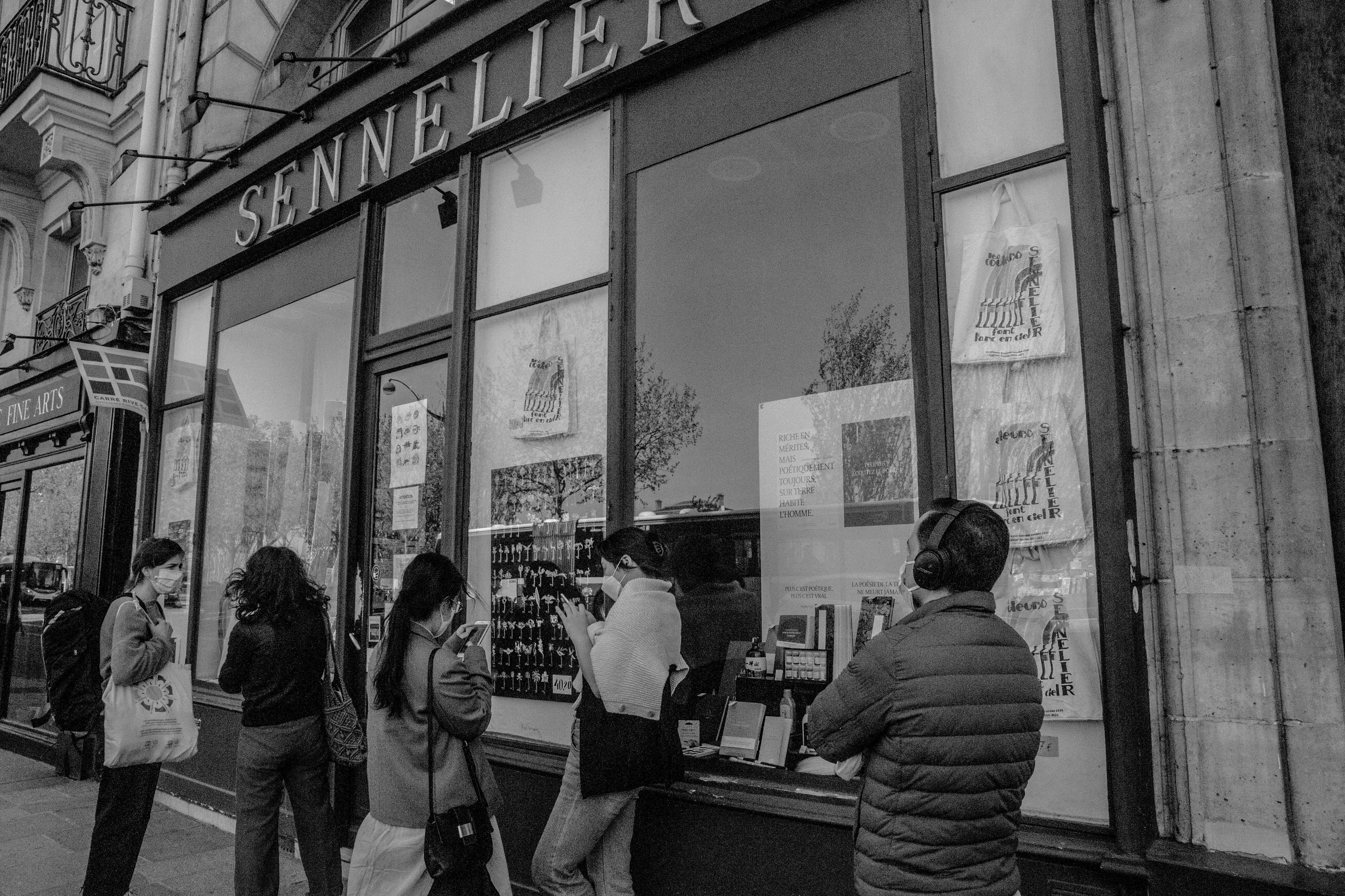 « Ce quai est un cimetière », me dit Mina. Le restaurant Voltaire est fermé, les boutiques des antiquaires sont fermées. Quelques traces de vie, cependant : deux amoureux, des vieux aux accoutrements pittoresques et quelques artistes qui font la queue devant le magasin Sennelier, « le temple des Beaux-Arts ». Les anges des antiquaires regardent vers l’autre rive et Lange se fait leur complice.