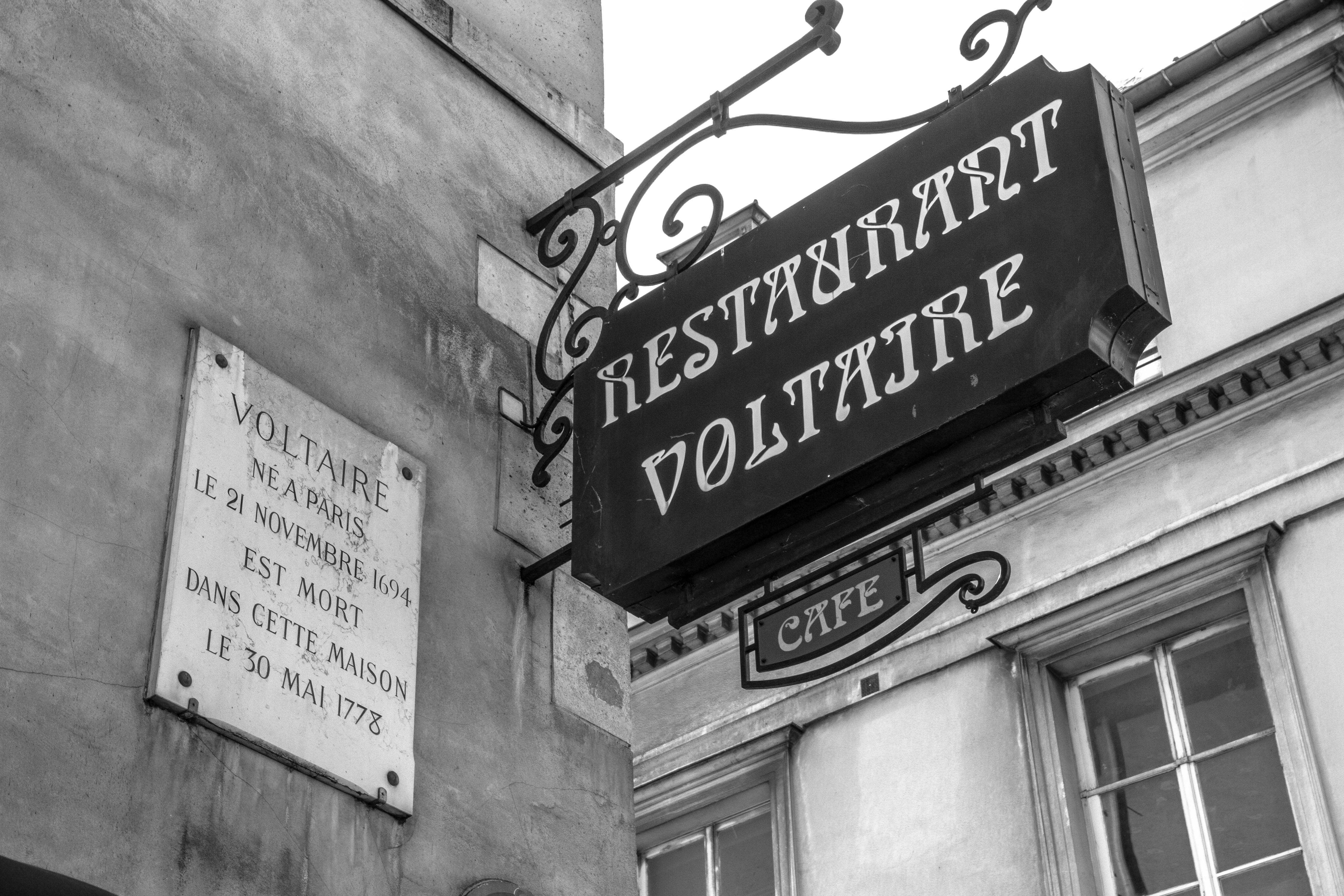 L’immeuble le plus connu du quai est cependant le n°27, à l’angle de la Rue de Beaune, où mourut Voltaire le 30 mai 1778. Hillairet y consacre trois pages. Voltaire, après son long séjour à Ferney, revint à Paris le 10 février 1778 et fut logé là par le marquis Charles de Villette. « Il fut accueilli par la Cour et par la Ville avec un enthousiasme extraordinaire, bénit ici le petit-fils de Franklin en prononçant les mots « Dieu, Liberté et Tolérance », puis tomba malade. » L’écrivain, qui avait 84 ans, eût néanmoins la force de terminer sa tragédie Irène (quel con !). Dans une lettre du 26 qu’il adressa à son médecin, il écrit Le patient de la rue de Beaune…demande pardon de donner tant de peine pour son cadavre ». La plaque historique posée sur le trottoir par la Ville de Paris nous rappelle que le corps de Voltaire est à présent au Panthéon, mais elle fait l’impasse sur un épisode scabreux que nous rapporte Hillairet : « Pour éviter que son corps, refusé par le curé de Saint-Sulpice, ne soit jeté dans un champ vague, son neveu, l’abbé Mignot, l’empaqueta dans un fiacre où il l’attacha avec des courroies, et s’empressa de le transporter à l’abbaye de Scellières, près de Troyes, dont il était commendataire ». Je crains bien que l’oeuvre de Voltaire ne soit aujourd’hui un cadavre. Mis à part Candide et quelques textes pour anthologies scolaires, le lit-on encore vraiment ? Je me souviens du Professeur André Vandegans évoquant l’édition de Kehl (où les Strasbourgeois vont acheter leurs cigarettes) et de l’édition Bestermann. J’en ai quelques volumes, mais ne les ouvre quasi jamais. A Montpellier, dans l’appartement de la Rue Flaugergues que je louais, la propriétaire, une jolie prof de lettres, avait installé au haut d’une encoignure un buste ricanant. Je l’avais orné d’un foulard rouge.