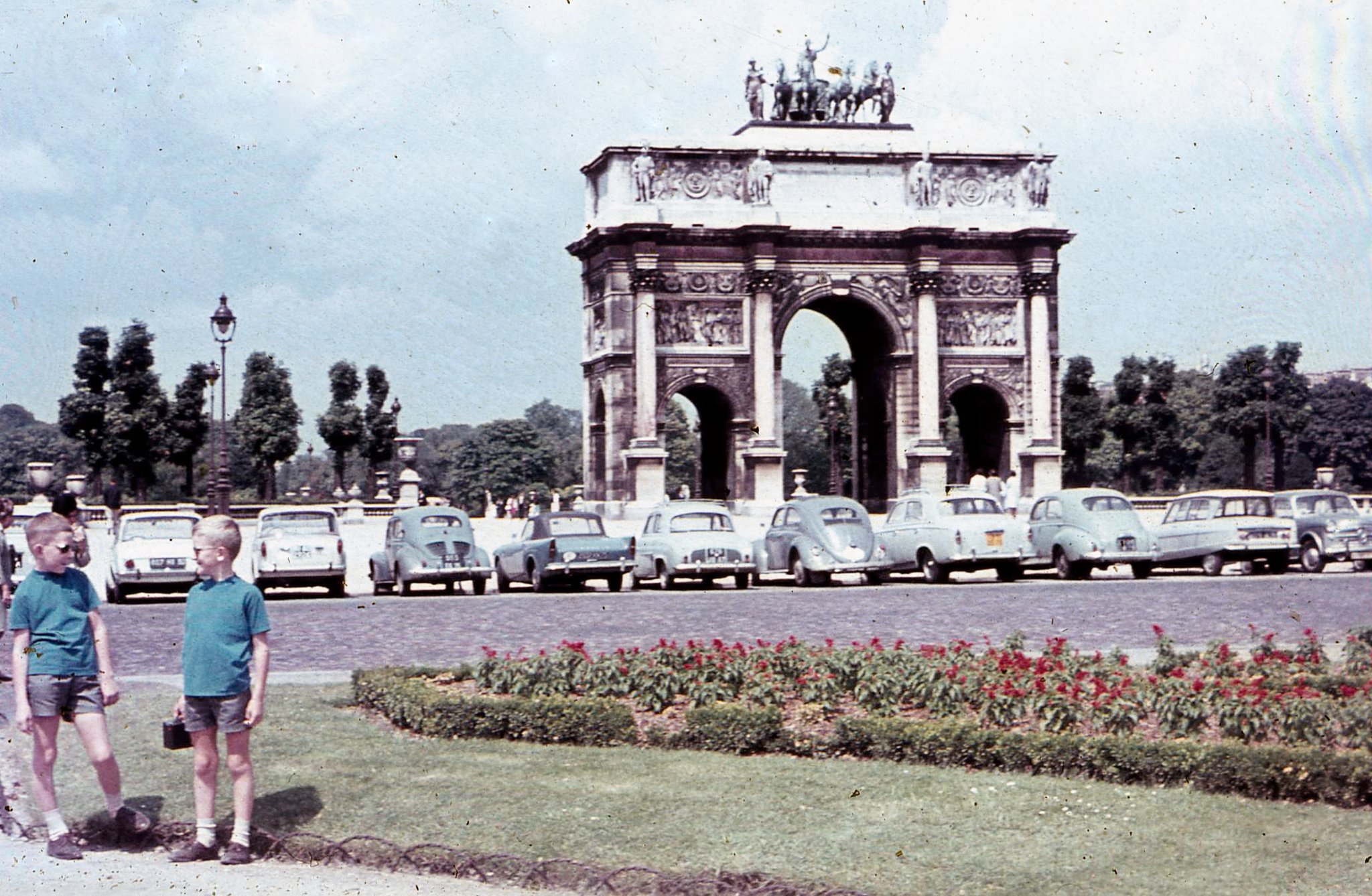 P.S. 11 décembre 2021. Je retrouve enfin cette photo qu’avait prise mon père lors de ce premier voyage à Paris. Devant l’Arc de Triomphe du Carrousel, on peut m’y voir avec mon frère Jacques. Je tiens à la main mon pemier appareil photographique, qui m’avait été offert par l’Oncle Jules : un gros parralélipipède noir, camera oscura assez basique. Je ne pense pas que mes propres photos de ce premier voyage à Paris aient été conservées. Dommage.