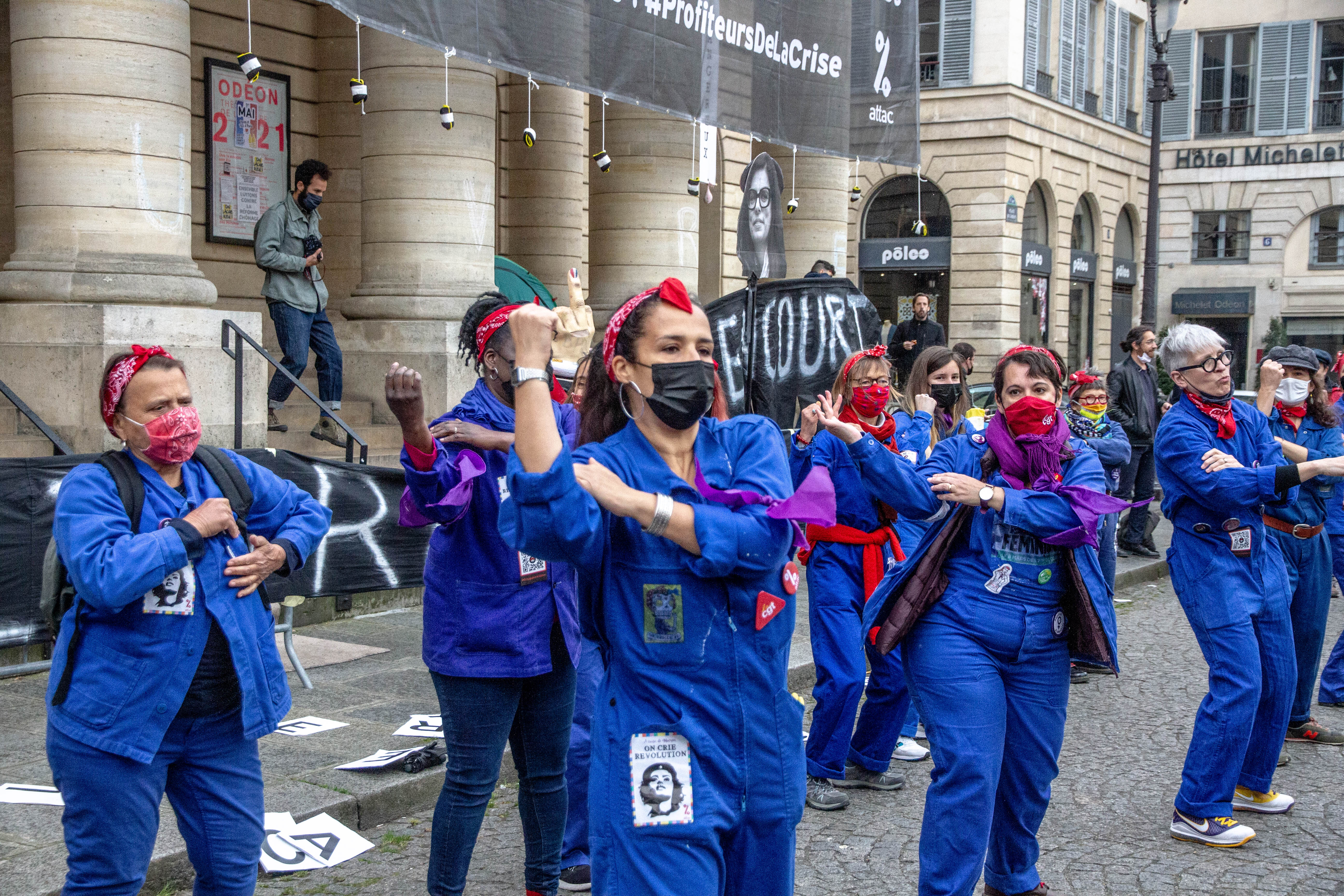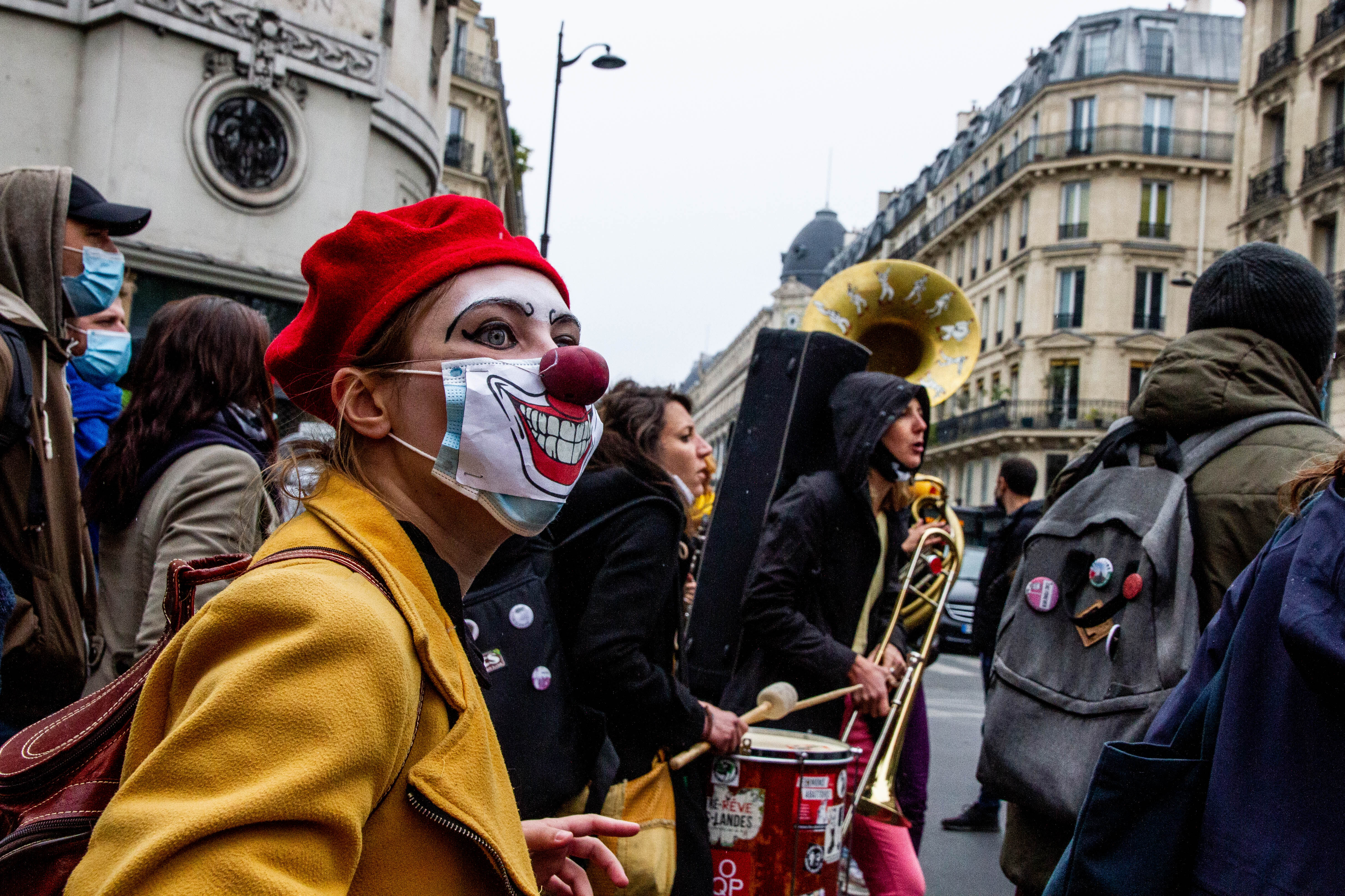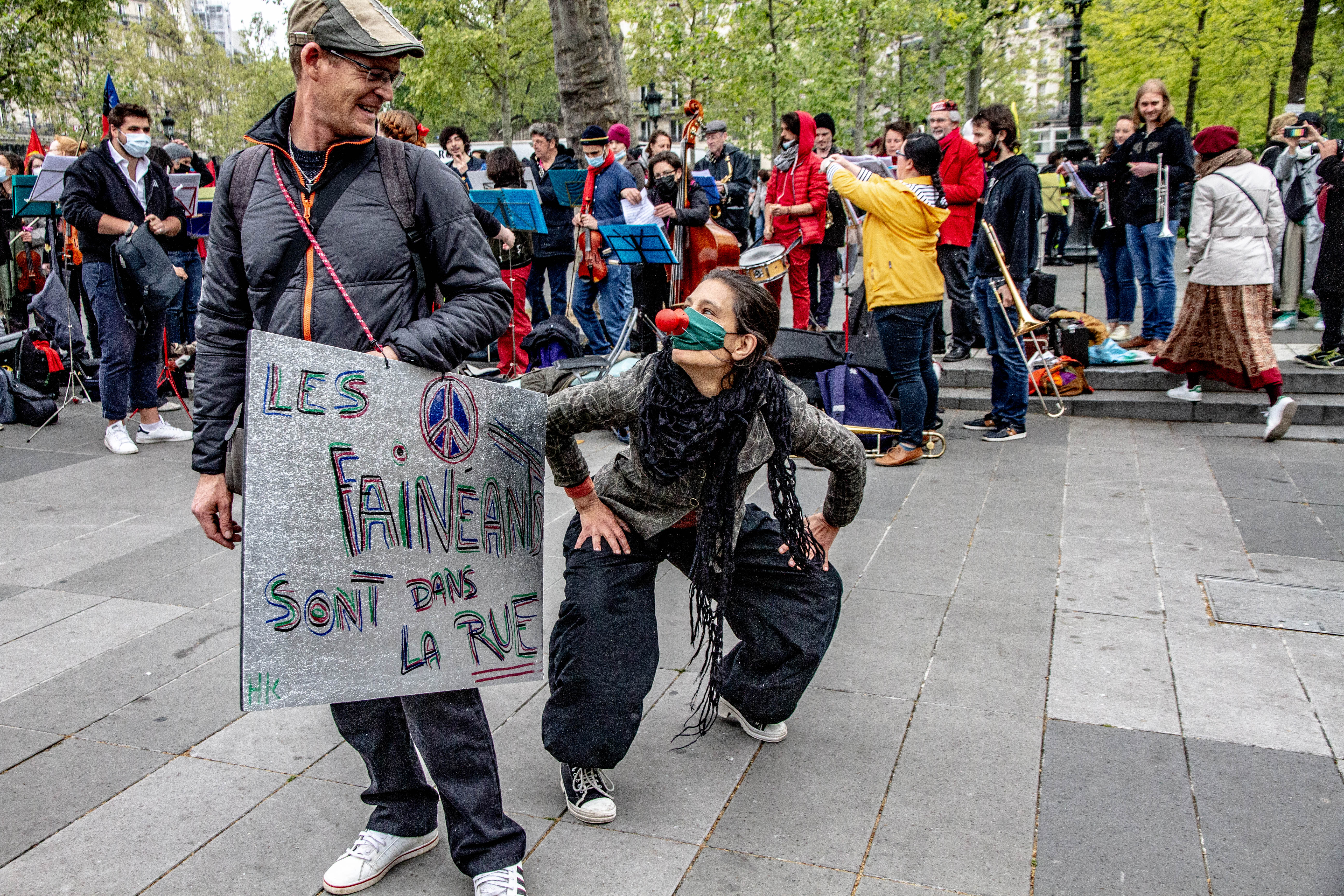 Aujourd’hui, reportage sur la manifestation du 1er mai à Paris, ou, plutôt sur trois manifestations : à midi, j’ai rejoint les travailleurs de la culture, en particulier les intermittents du spectacle qui occupent l’Odéon.. Nous avons marché jusqu’à la Place de la République. Quelques professionnels du secteur de l’événementiel se sont joints au cortège. La Place de la République était occupée par une myriade d’organisations diverses, beaucoup d’organisations des autres parties du monde, et aussi par quelques poignées de gilets jaunes. A partir de la Place de la République, le cortège vers la Place de la Nation était organisé par la CGT. J’ai quitté ce cortège à hauteur du Bataclan et n’ai donc pas assisté aux traditionnels heurts avec les forces de l’ordre, qui contrastent avec le caractère pacifique de la majorité des manifestants. Quand je photographie une manifestation, je suis toujours partagé entre un souci documentaire, mais qui risque de devenir policier (recenser l’ensemble des organisations présentes et la diversité des mots d’ordre), un souci de saisir des moments humains er un souci du photogénique. Les manifestations parisiennes illustrent la diversité, les divisions et certaines errances des mouvements de gauche et, particulièrement aujourd’hui, de ceux qui viennent se joindre à une manifestation traditionnelle de la gauche pour y défendre des causes, des thèses, des moyens d’expression qui ne sont clairement pas ceux de gauche. J’ai photographié aussi ce type de manifestants. Photographier n’est pas adhérer.