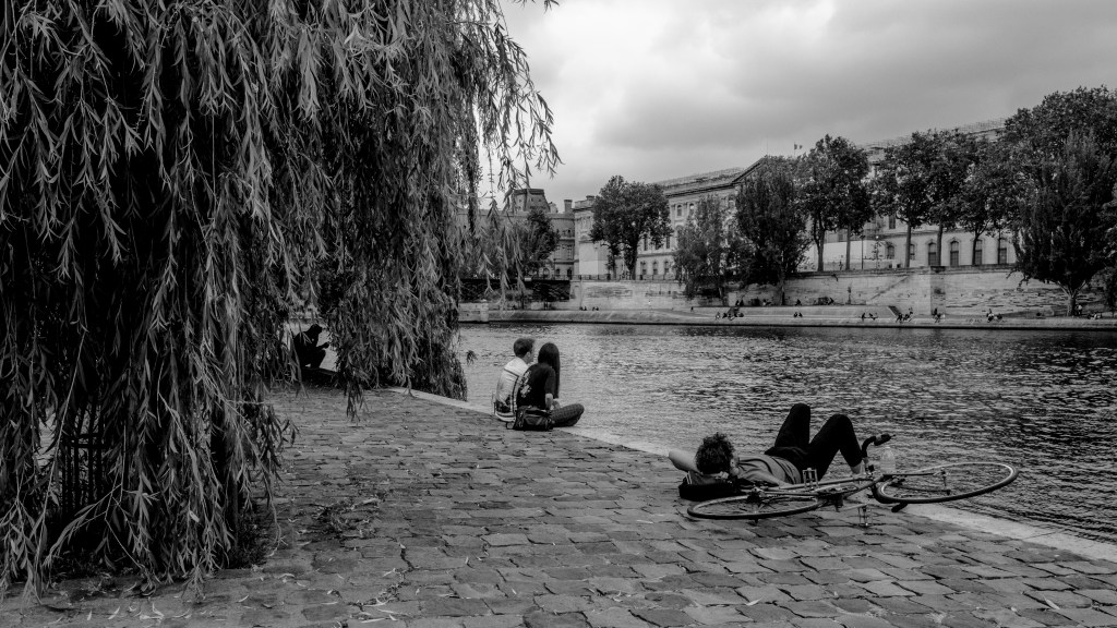 Les autres photos sont encore plus anecdotiques. Comment rénover la photographie des quais de Paris ? A l’extrême pointe du square du Vert galant, un jeune couple est perturbé dans sa rêverie par un bavard qui leur raconte je ne sais quelle histoire de propriété.