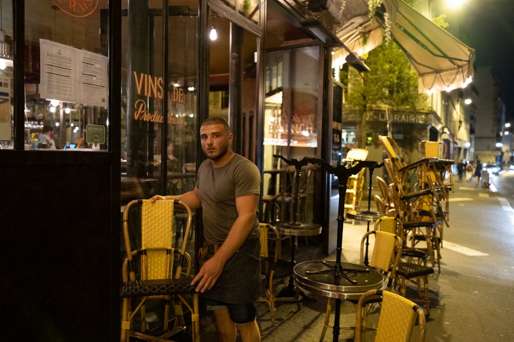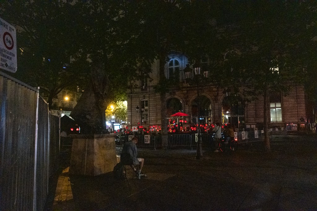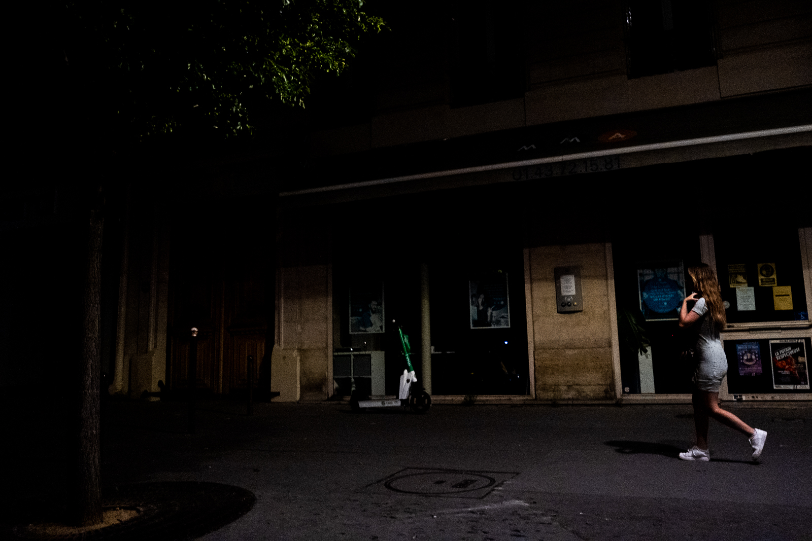 L’heure du couvre-feu est tombée. Les terrasses se vident, des employés de cafés ou restaurants rentrant tables et chaises. Rue de la Roquette, je photographie l’un d’eux, quasi à bout portant. « Pourquoi ? » « Reportage sur la nuit ! » « Ah, alors ça marche ! ».