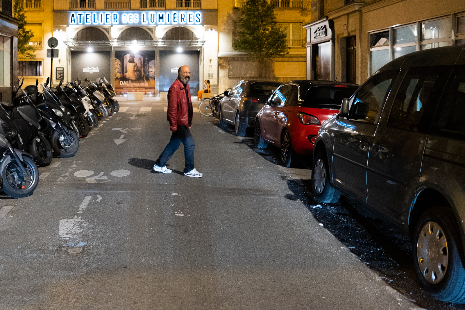 Rue Rochebrune, j’attrape un errant devant l’Atelier des Lumières. Une passante qui me croise demande, d’un ton un peu ironique : « La photo est réussie ? ». Je réponds « Bien sûr ! ». Il faut bien crâner un peu.