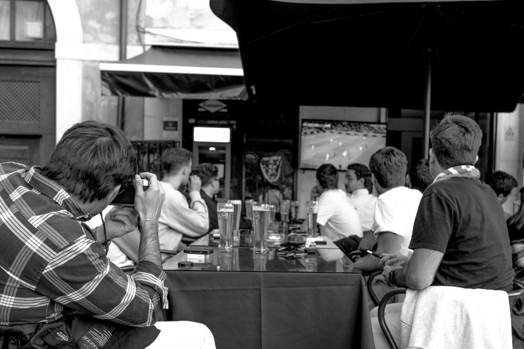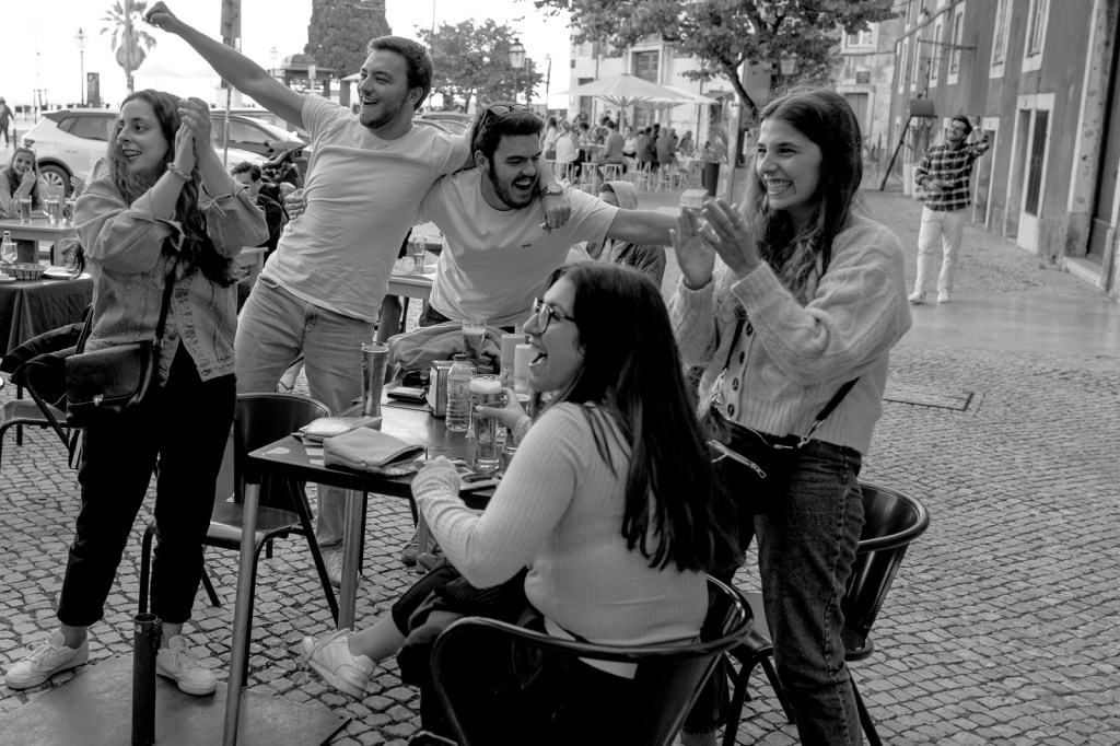 A la quarante sixième minute, l’arbitre siffle un penalty en faveur de la France. Je n’ai pas vu la scène, mais le critique du Guardian, source impartiale, écrit que c’est une décision erronée. Je vais me poster pour photographier la joie de la table des Français. Ils ne bronchent pas. Je crois que le tir est raté, d’autant qu’une jeune Portugaise se retourne vers eux toute souriante. Non, Benzema tire juste. Consternation.