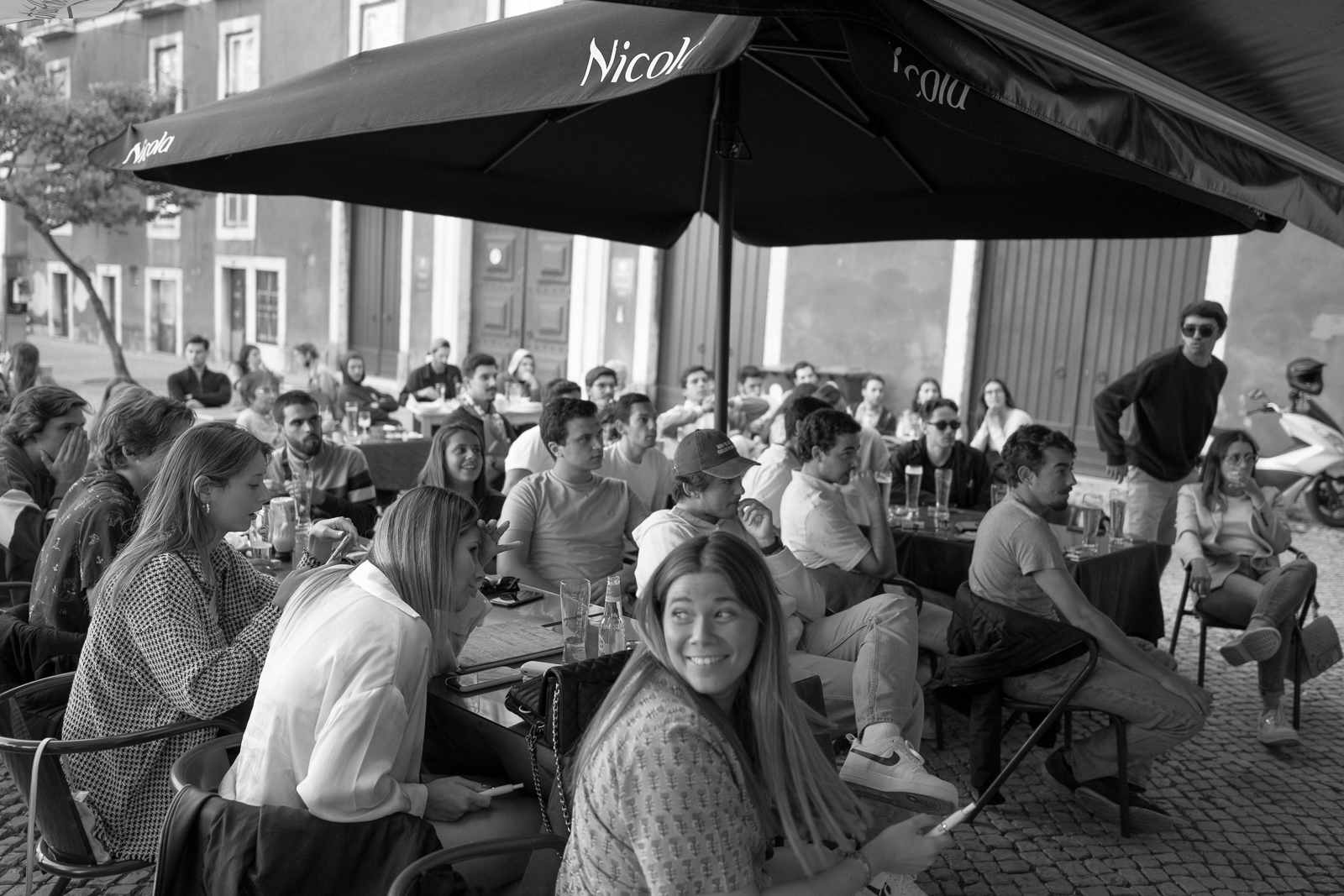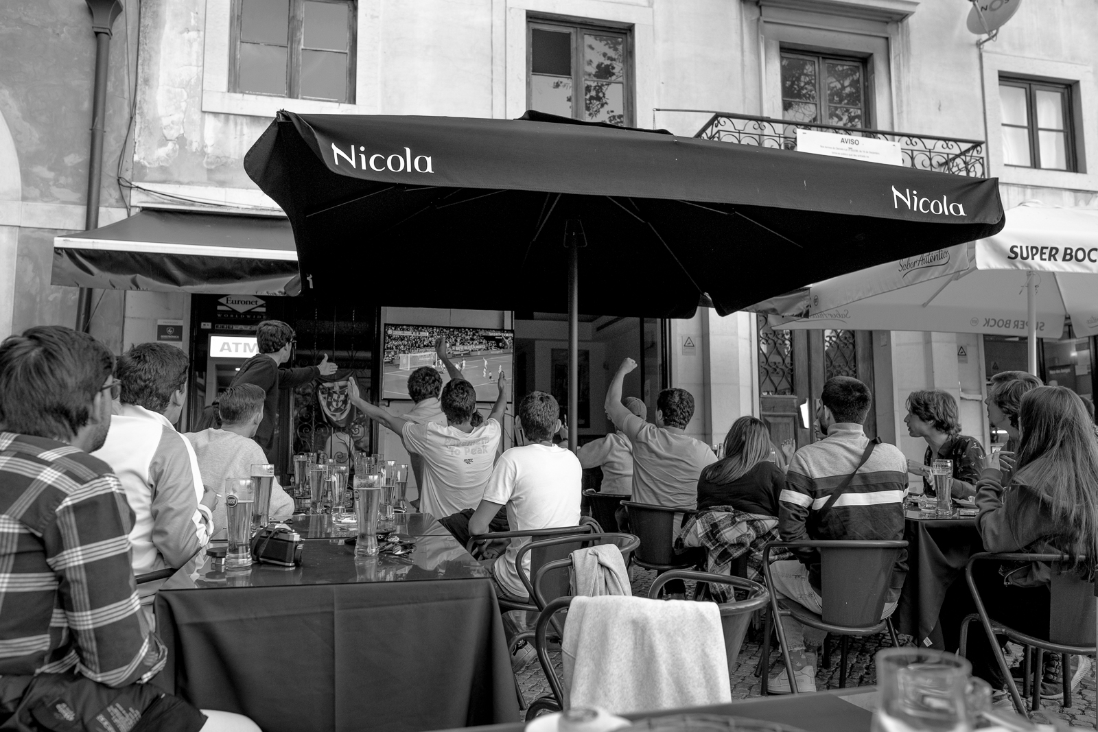 Nous décidons d’aller suivre le match au Cantinho ao Sol, à la même terrasse que celle où nous avions suivi Hongrie-Portugal. Le public est très différent. Plusieurs tables ont été réservées par un groupe de jeunes Portugais. Deux tables sont occupées par des Français. L’Angolais qui égrainait son chapelet pendant le match est là, debout. Il explique aux Français qu’il a longtemps vécu à Marseille, mais ne se prononce pas sur ses préférences.