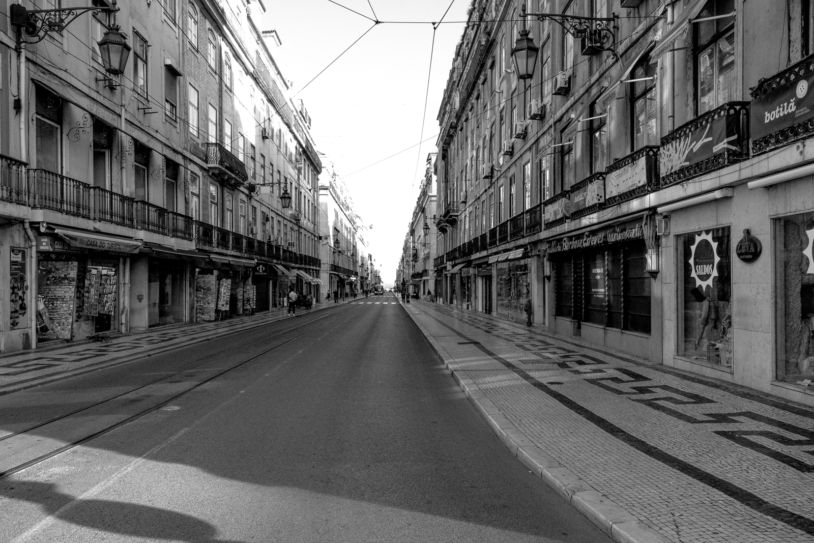Aujourd’hui, France-Portugal. Le match à ne pas perdre pour les Portugais si ils veulent se qualifier pour les huitièmes de finale. Le match est à 20 heures, mais dès 19 heures, les rues sont vides. Dans la Baixa, je prends une photo de la Rua da Prata, d’habitude encombrée de voitures, qui aurait pu être prise au temps du confinement.