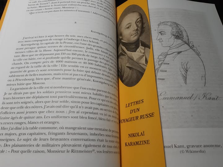 18 janvier 2023 – Pour démontrer à Maria Zakharova que je ne suis pas russophobe, je lis les « Lettres d’un voyageur russe » de Nikolaï Karamzine, un vif admirateur de Sterne, et qui voyagea en Europe en 1789 et 1790. Les historiens citent cette correspondance jouée comme une des oeuvres fondatrices de la littérature russe. Le 19 juin 1789, à peine un mois avant la prise de la Bastille, il rend visite à Emmanuel Kant dans sa modeste maison de Königsberg. « Tout chez lui est simple…sinon sa métaphysique« . La conversation dure trois heures. « Kant parle vite, très bas, et de manière peu compréhensible, aussi ai-je dû l’écouter en tendant à l’extrême tous les nerfs de mon ouïe ». Ils parlent de la Chine, de la découverte de nouvelles terres et de Lavater. Le jeune russe tente un verbatim de la pensée du vieil allemand : « Ne voyant pas le but ou la fin de notre désir dans cette vie, nous nous en remettons à la suivante, où le noeud devra être défait. Cette pensée est d’autant plus agréable à l’homme qu’ici bas il n’y a guère de proportion entre les joies et les peines, entre le plaisir et la souffrance. Je me console en pensant que j’ai déjà soixante ans et que bientôt viendra le crépuscule de ma vie, car j’espère gagner la vie suivante, une vie meilleure« .